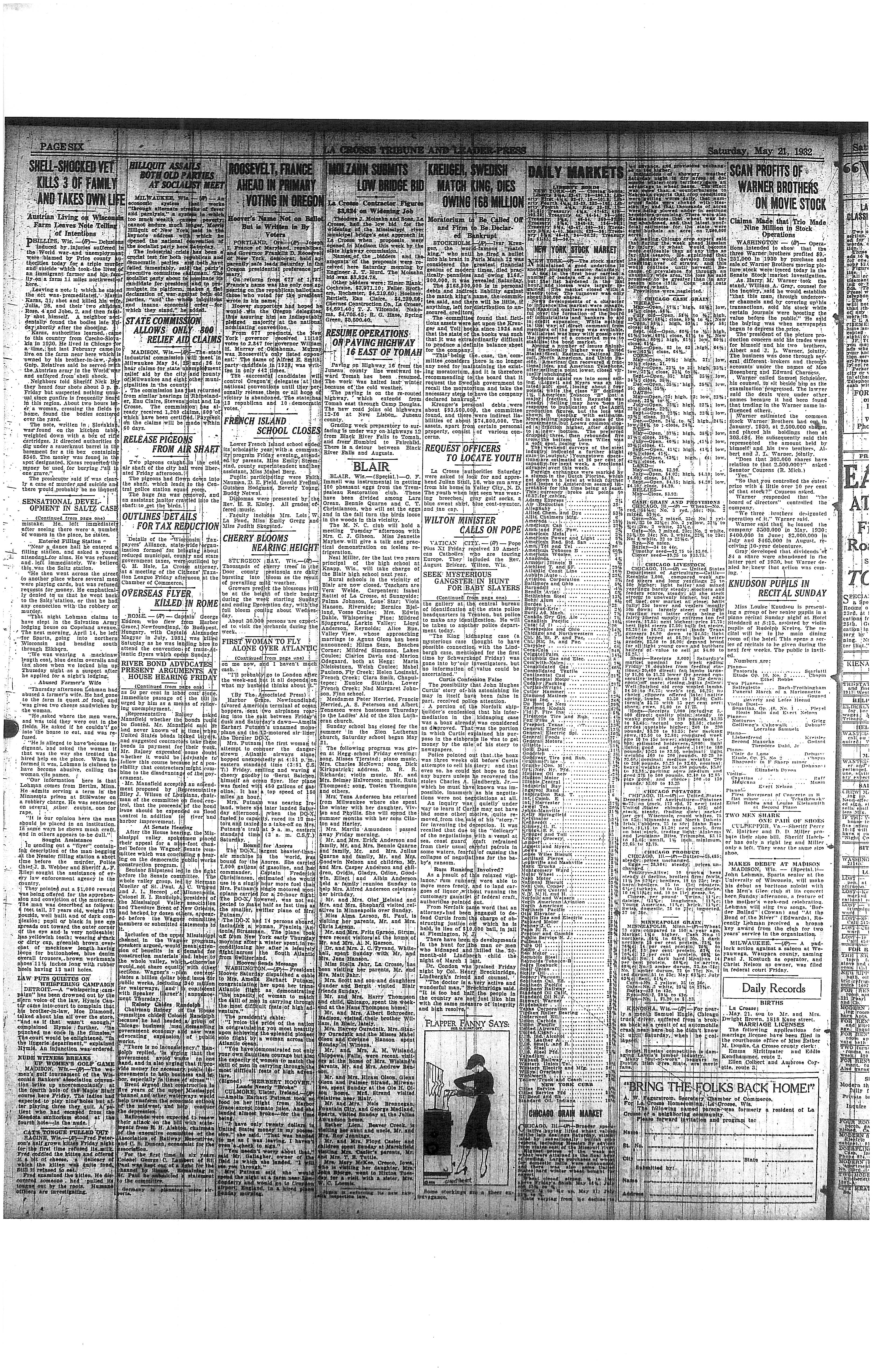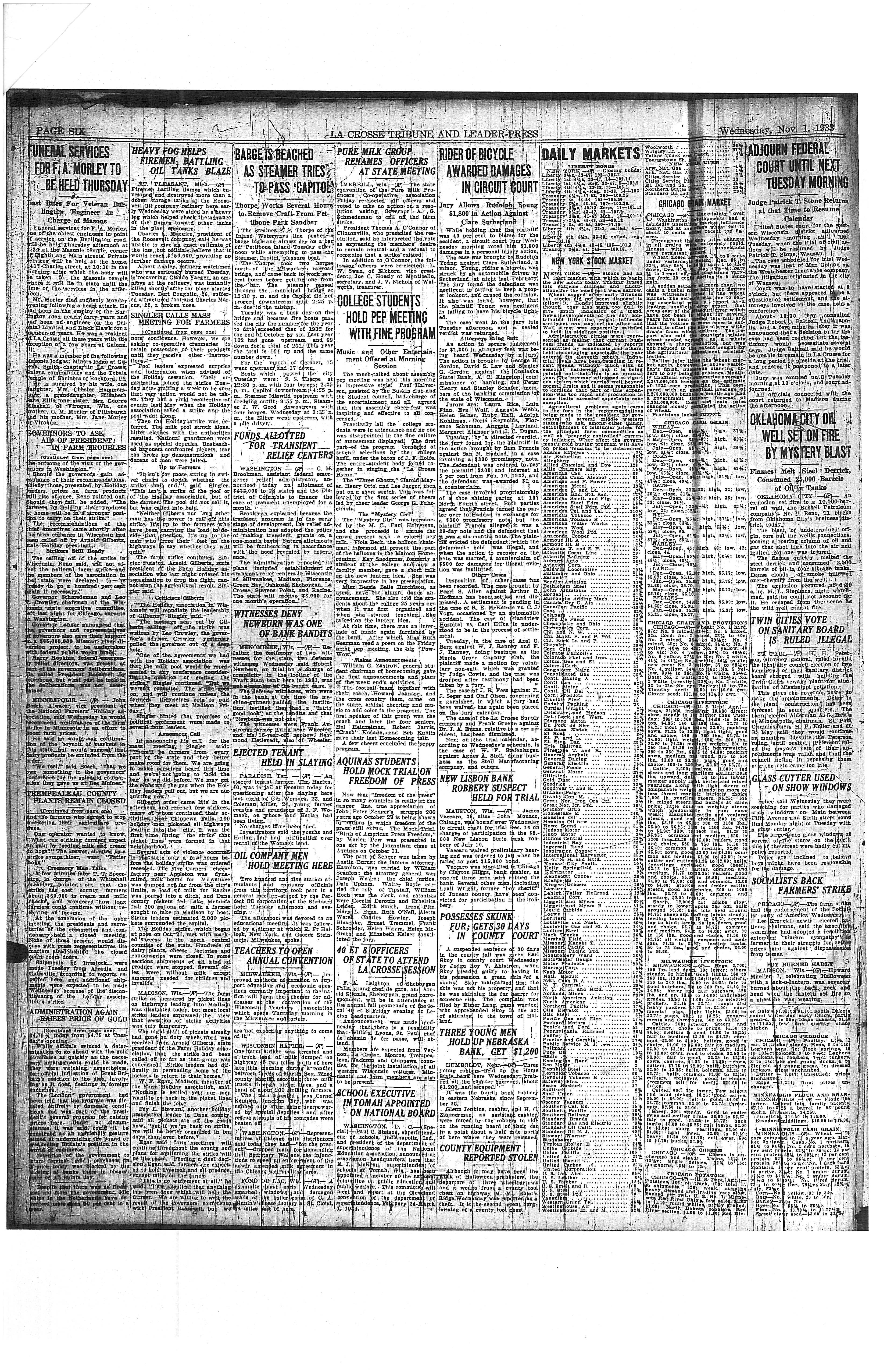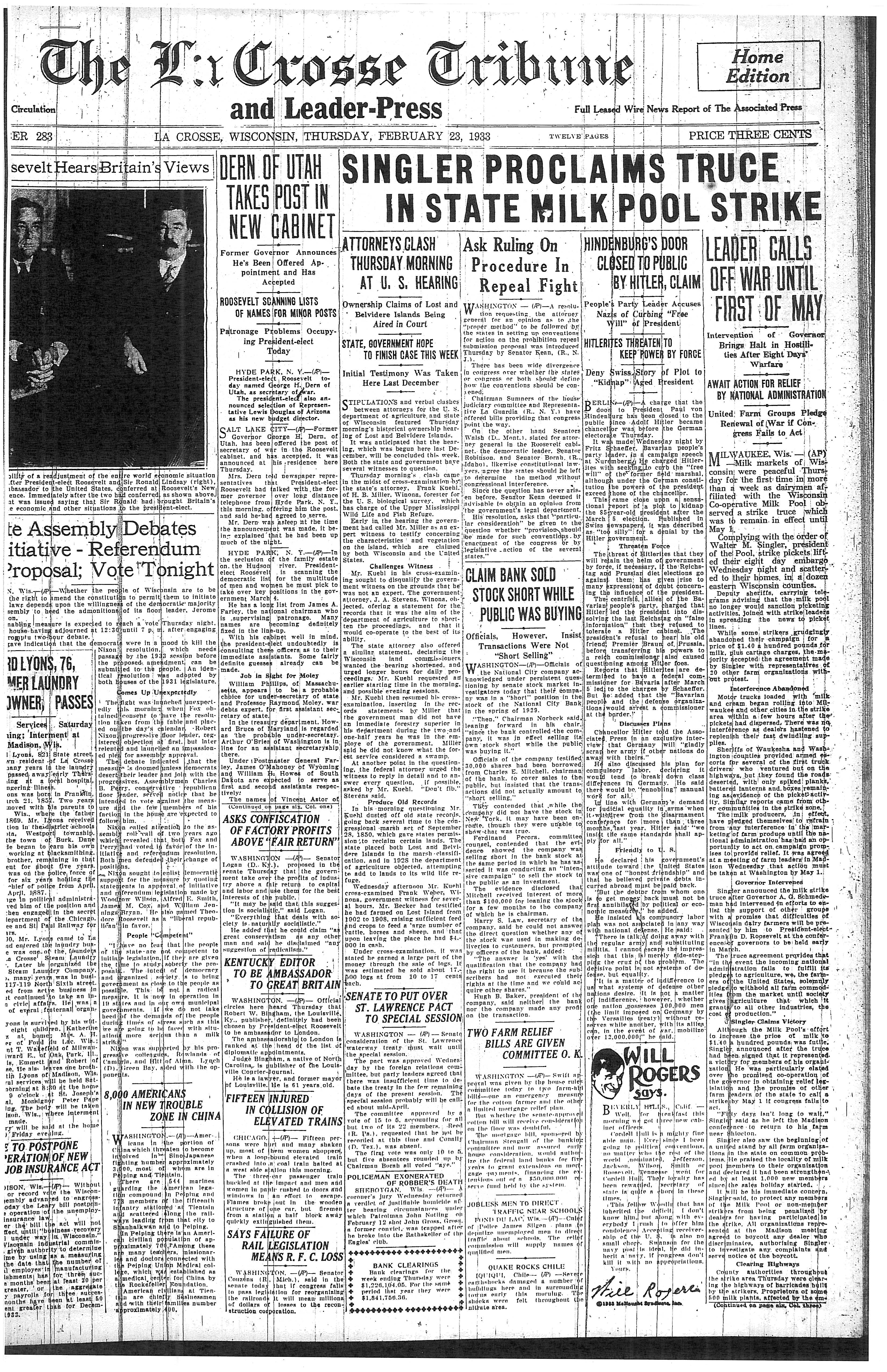 January 9, 1940, page 4 March 31, 1940, page 7 April 7, 1940, page 2April 14, 1940, page 5April 16, 1940, page 11April 17, 1940, page 16November 20, 1940, page 2November 26, 1940, page 14October 13, 1962, page 2October 16, 1962, page 9October 12, 1963, page 3 (insert)October 19, 1963, page 1 (insert)October 25, 1963, page 7March 4, 1972, page 22 September 20, 1984, page 19 October 7, 1984, page 11 February 5, 1987, page 1, part 1 February 5, 1987, page 8, part 2Milk Strike of 1933