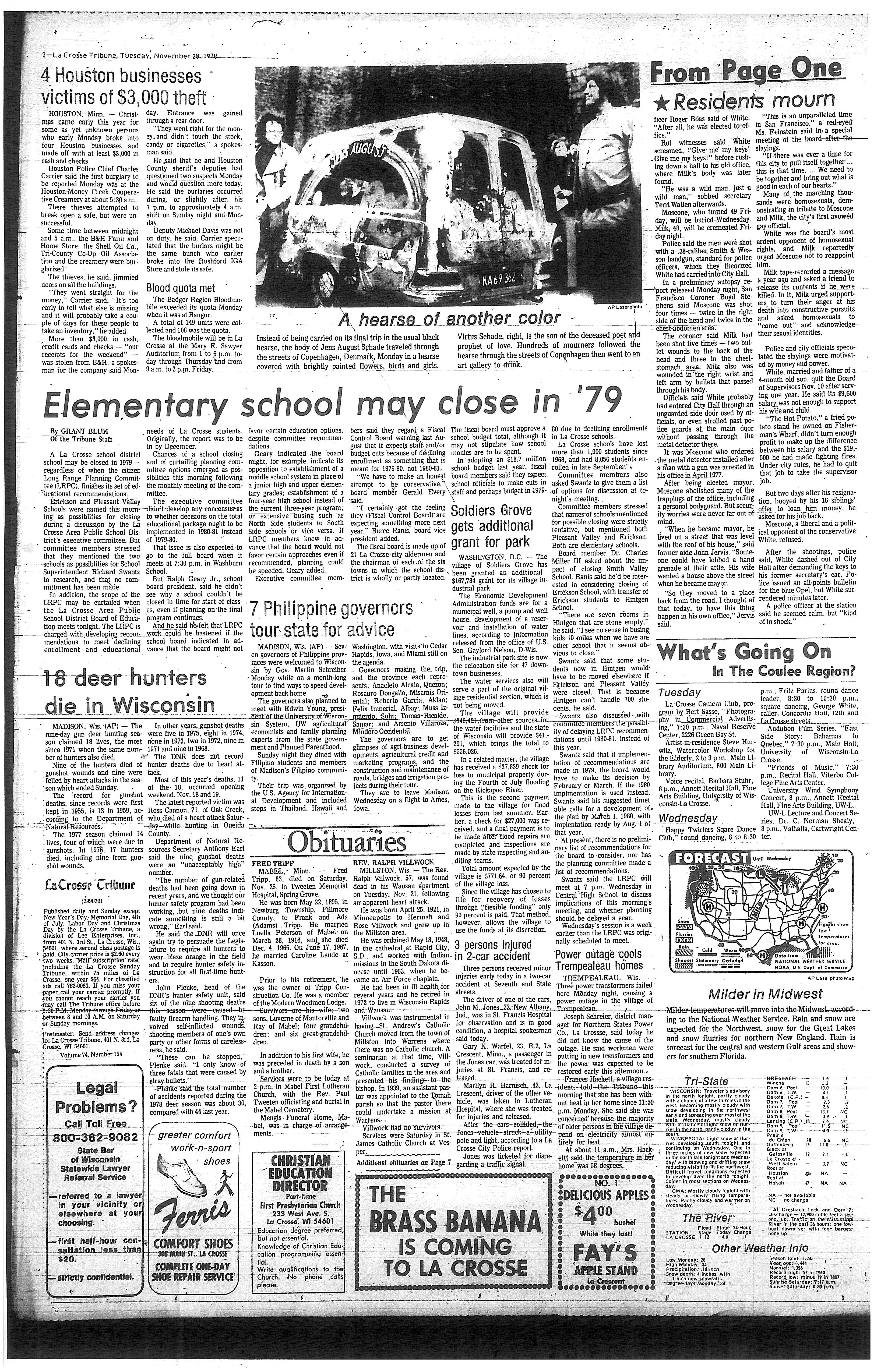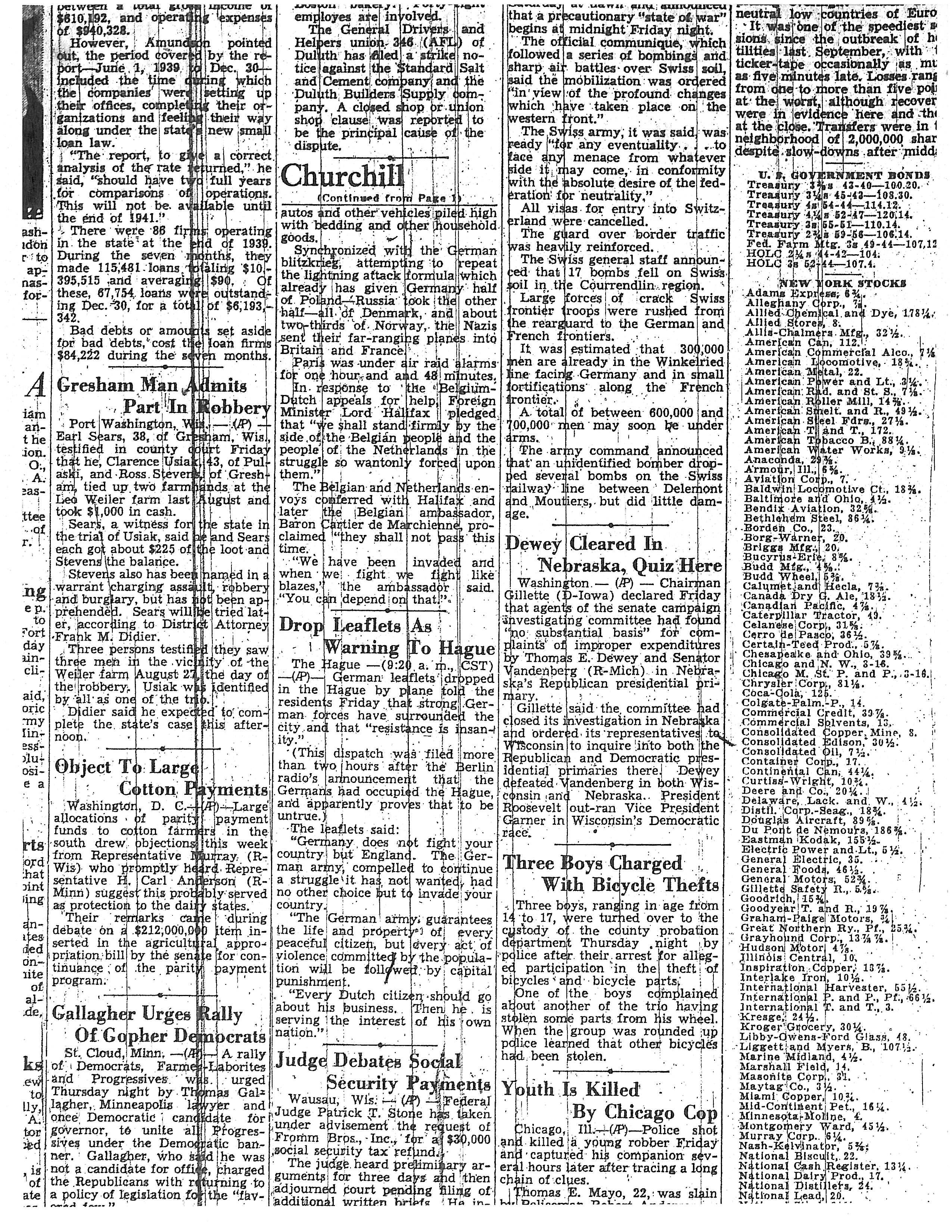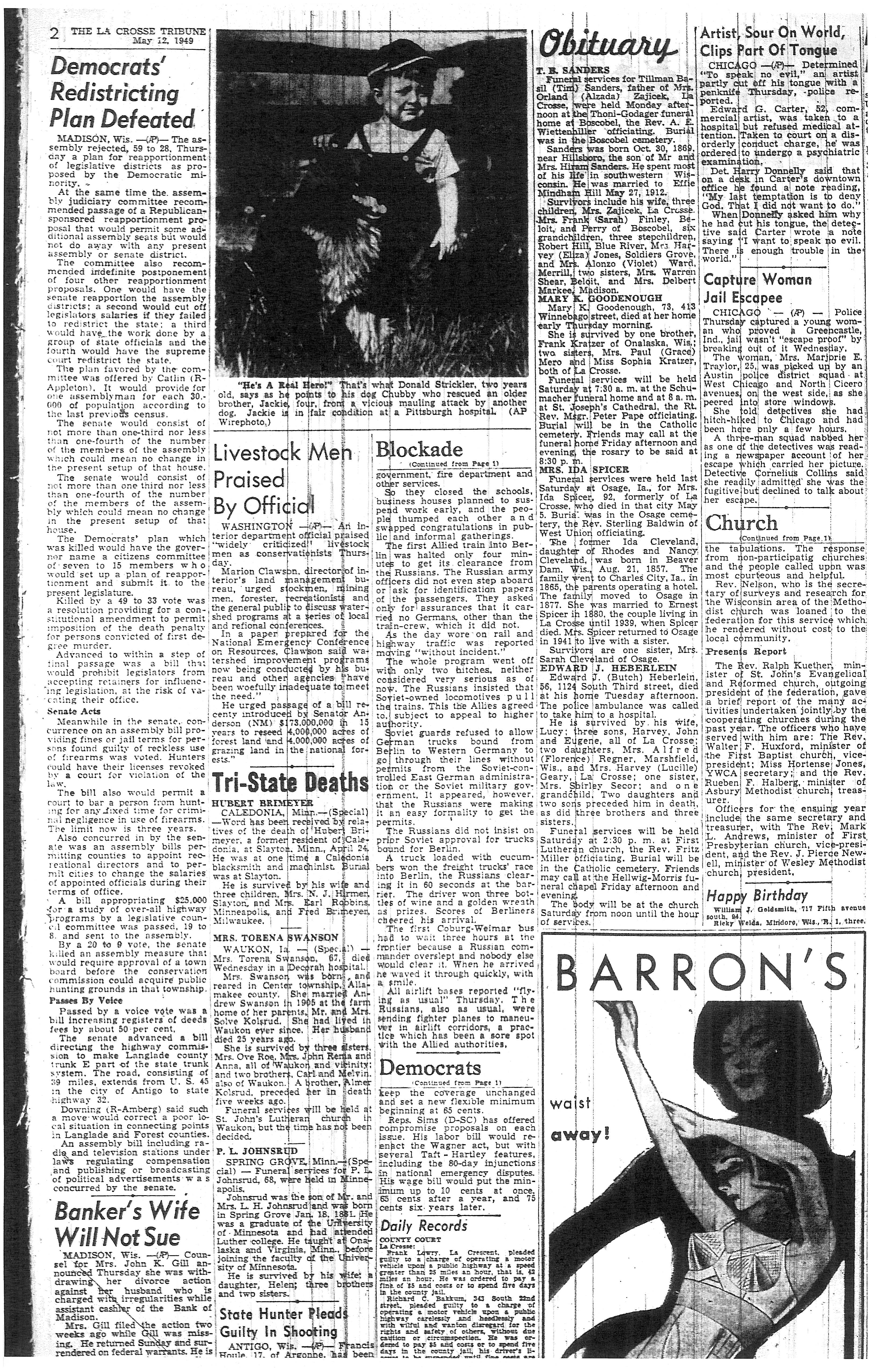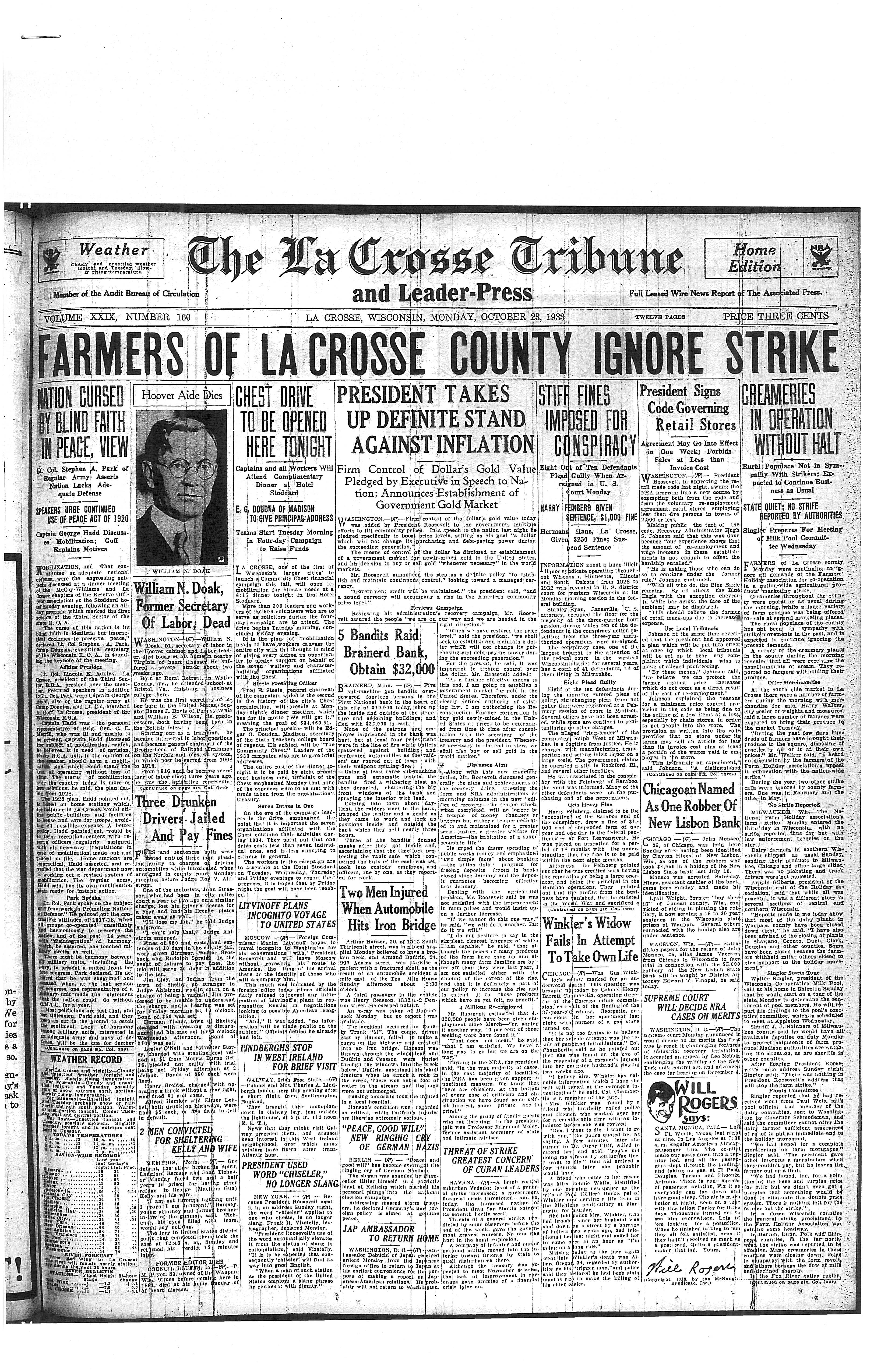 January 9, 1940, page 4 March 31, 1940, page 7 April 7, 1940, page 2April 14, 1940, page 5April 16, 1940, page 11April 17, 1940, page 16November 20, 1940, page 2November 26, 1940, page 14October 13, 1962, page 2October 16, 1962, page 9October 12, 1963, page 3 (insert)October 19, 1963, page 1 (insert)October 25, 1963, page 7March 4, 1972, page 22 September 20, 1984, page 19 October 7, 1984, page 11 February 5, 1987, page 1, part 1 February 5, 1987, page 8, part 2Milk Strike of 1933