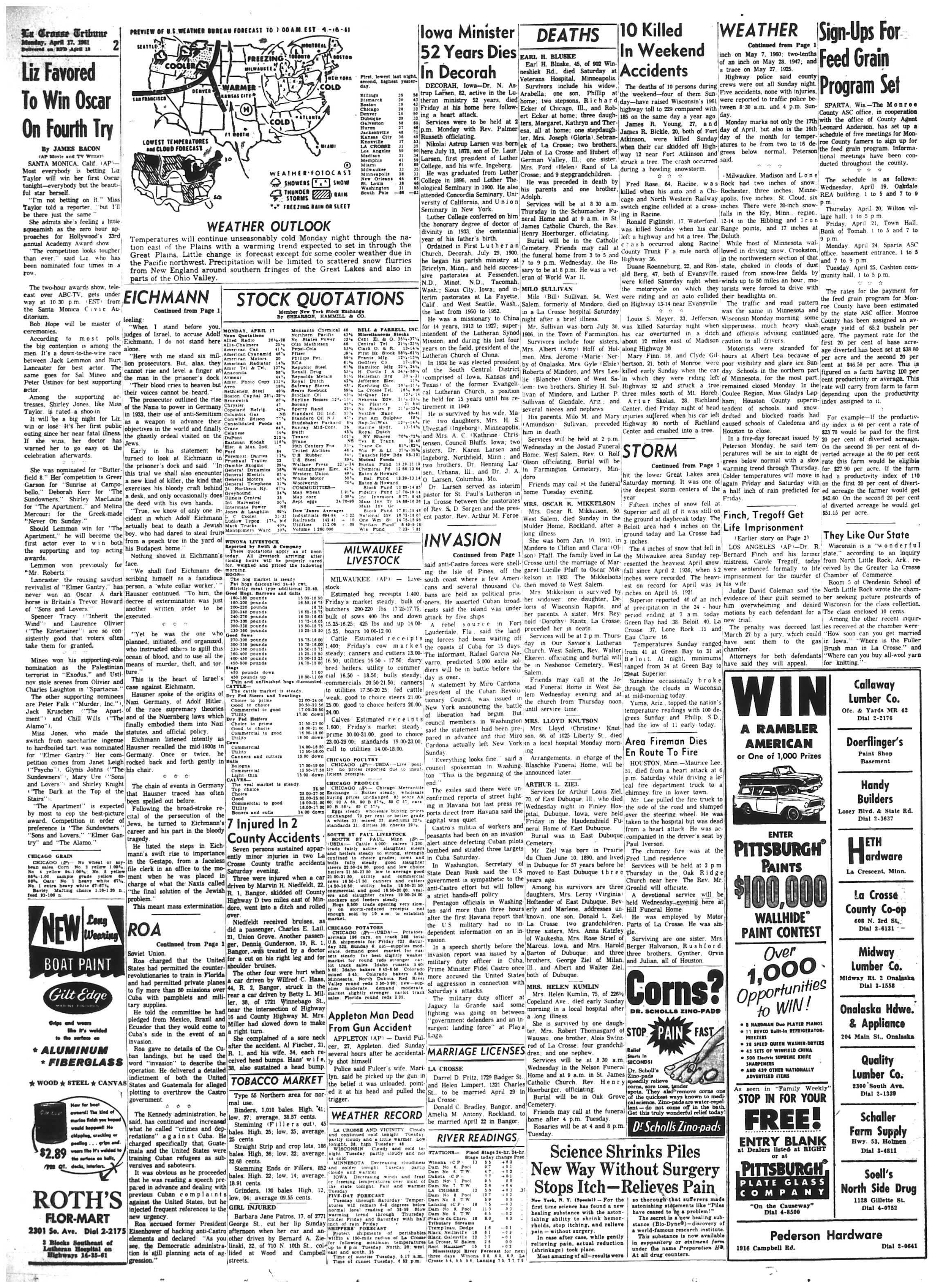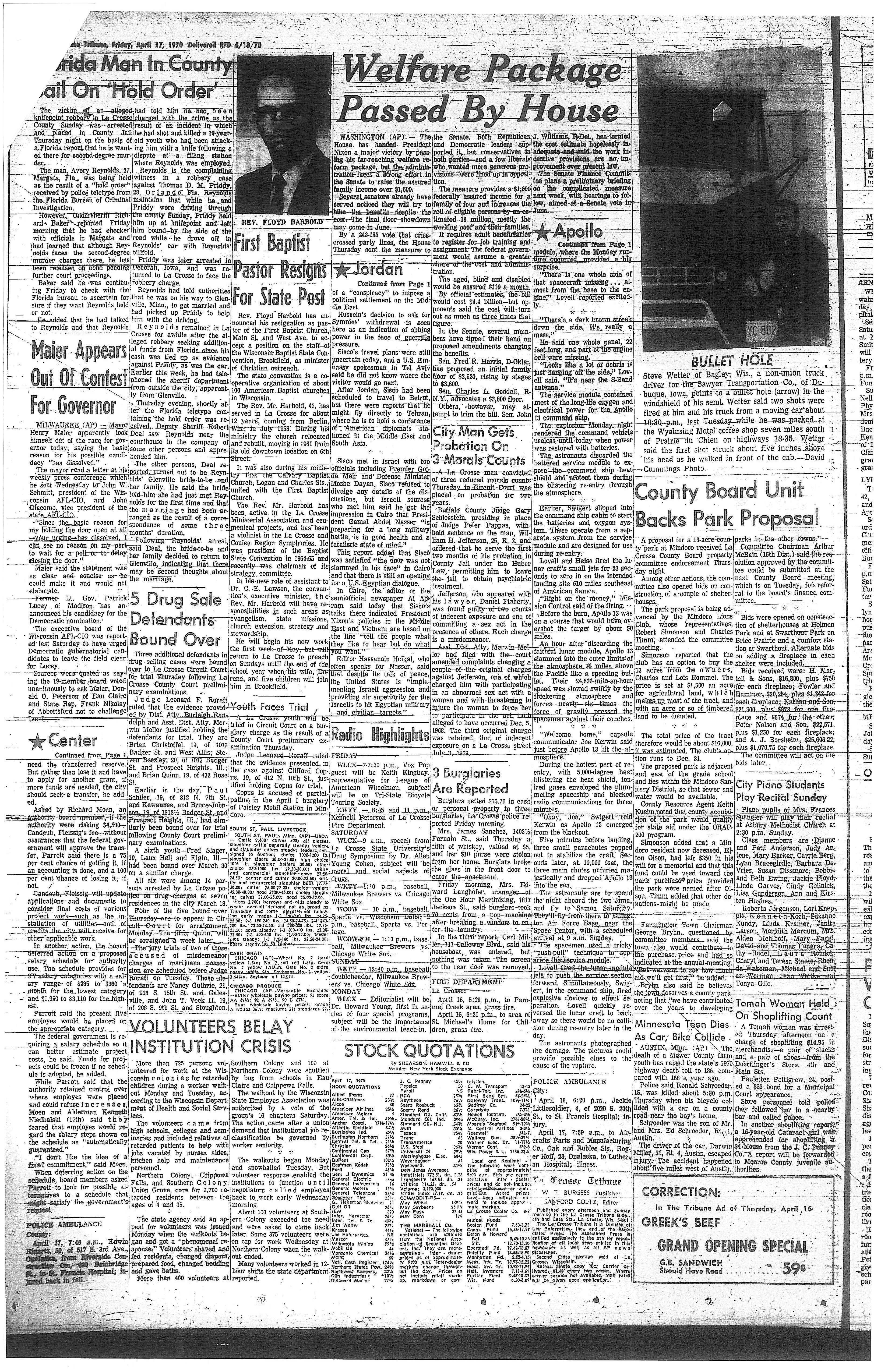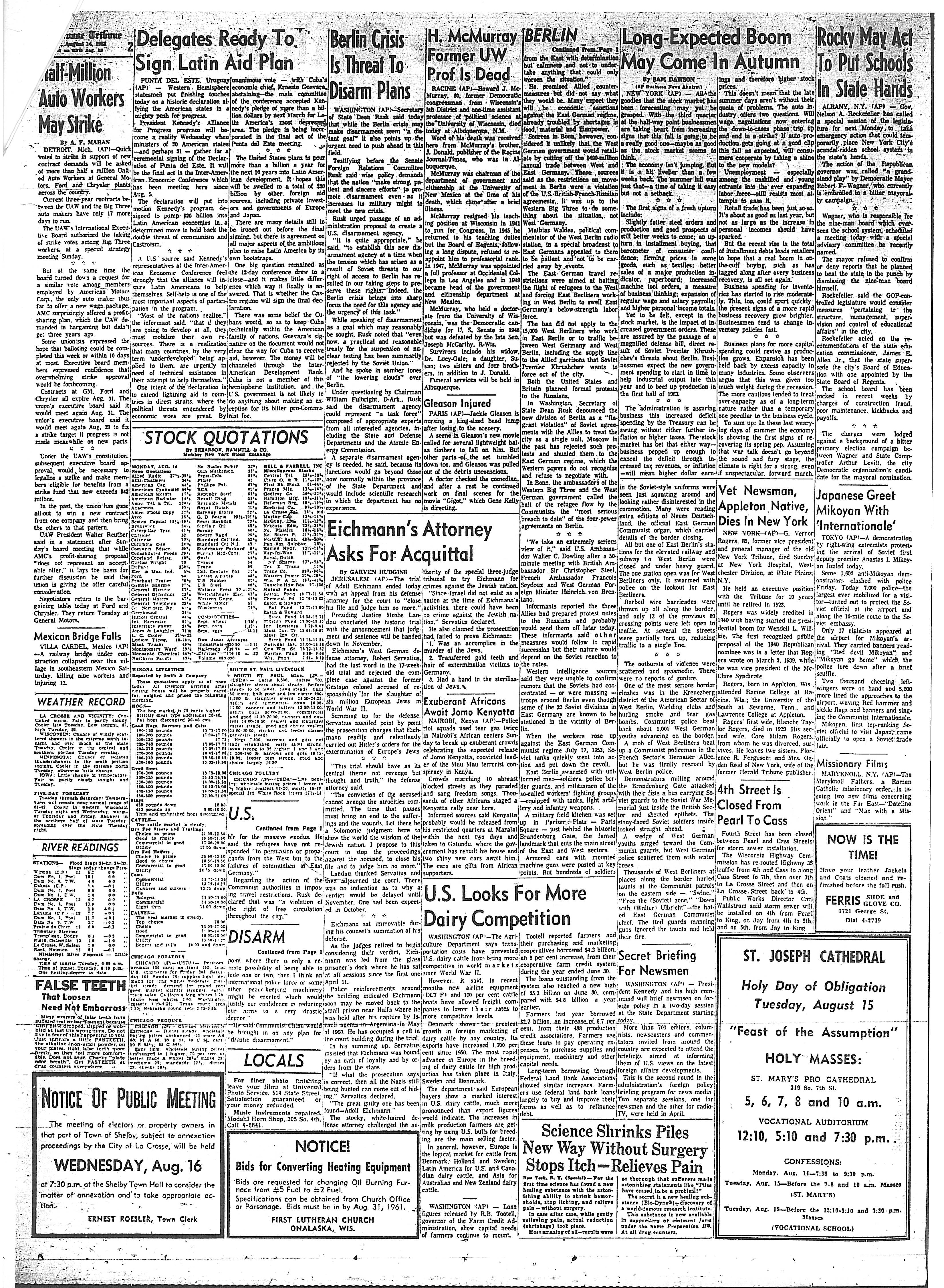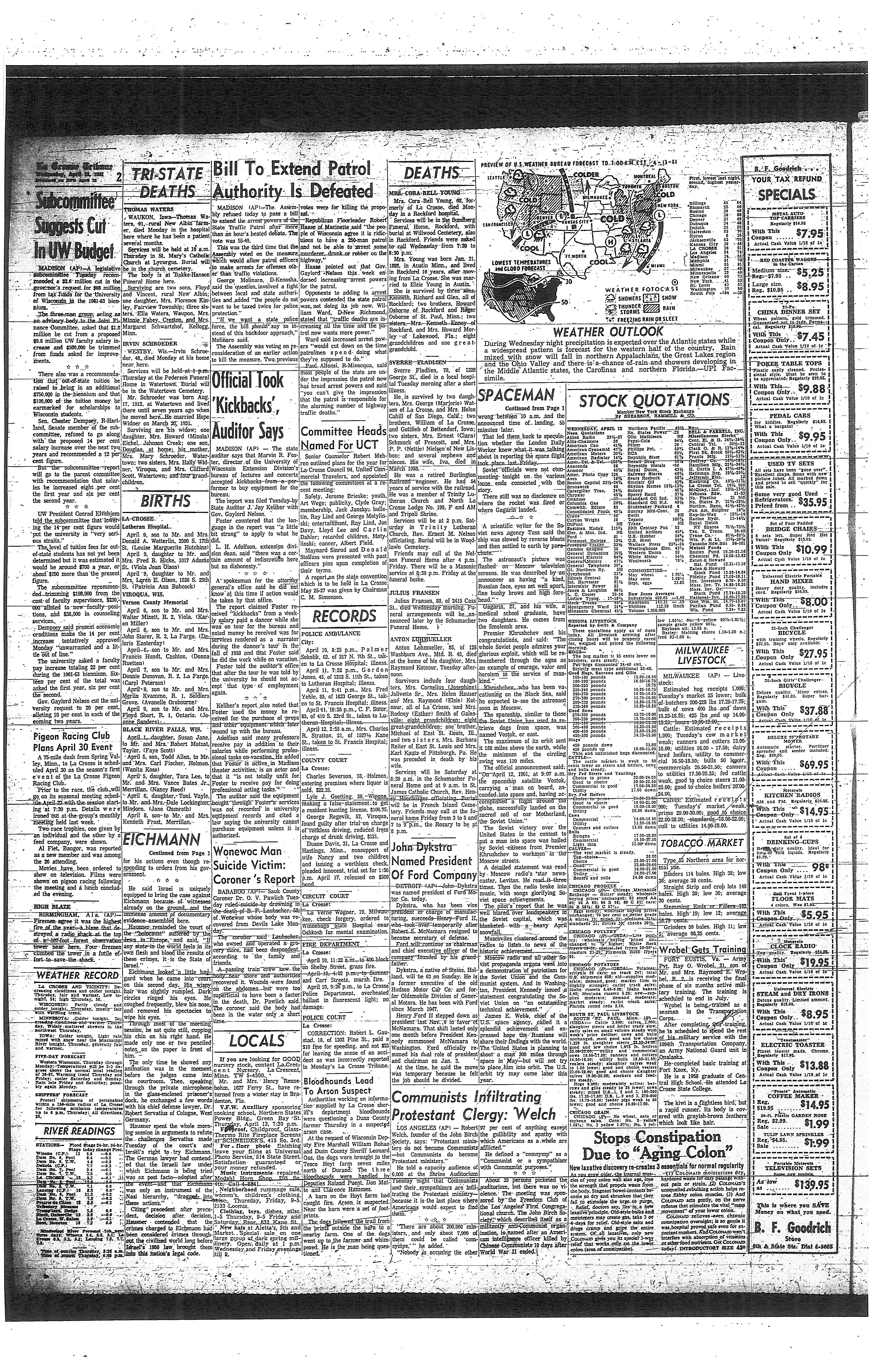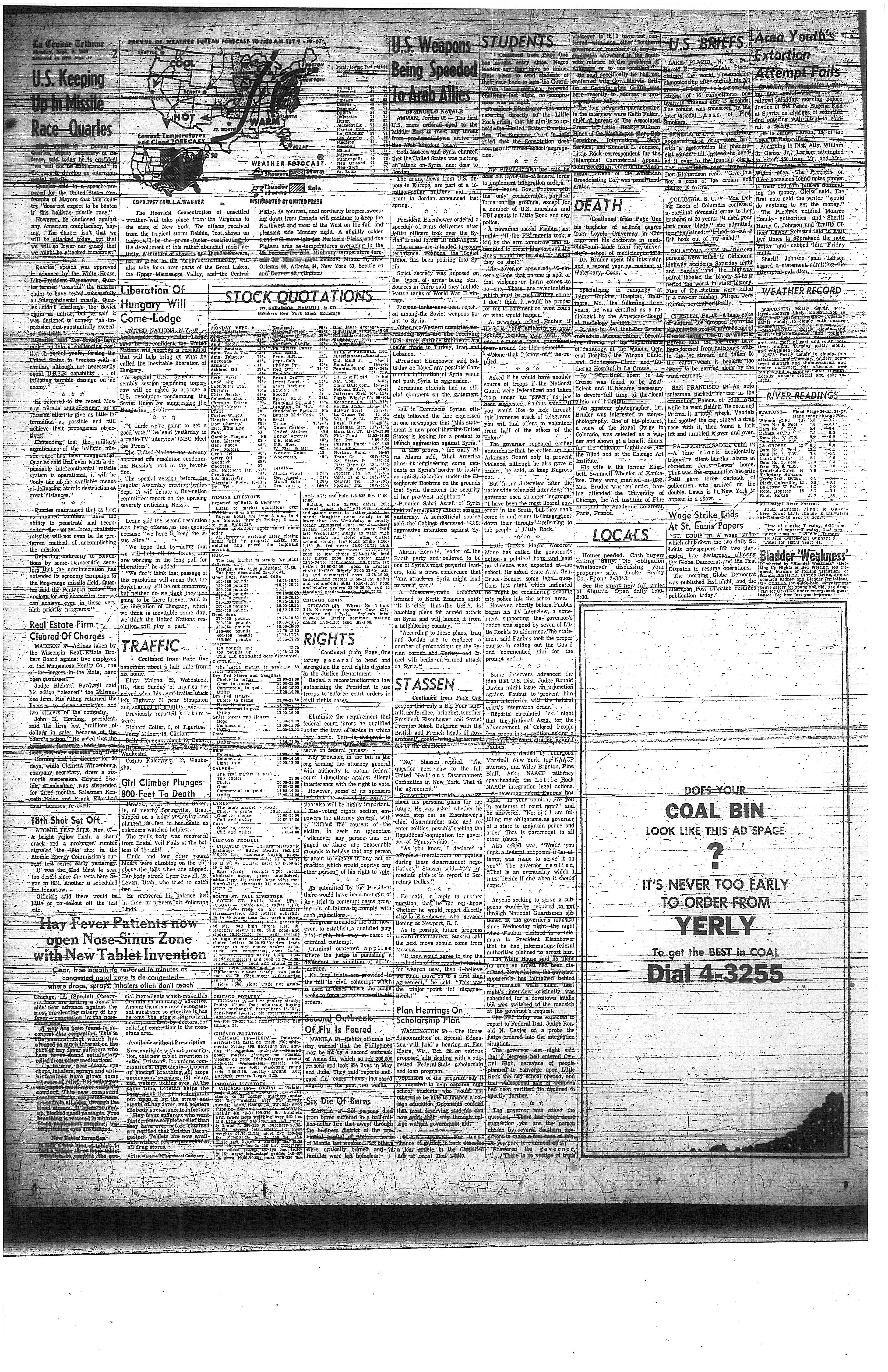 April 12, 1955, page 1 April 12, 1955, page 2 April 13, 1955, page 1 April 13, 1955, page 2 May 14, 1955, page 1 May 31, 1956, page 4 August 17, 1961, page 13 April 27, 1994, page 1 April 27, page 1994, page 2Prohibition
