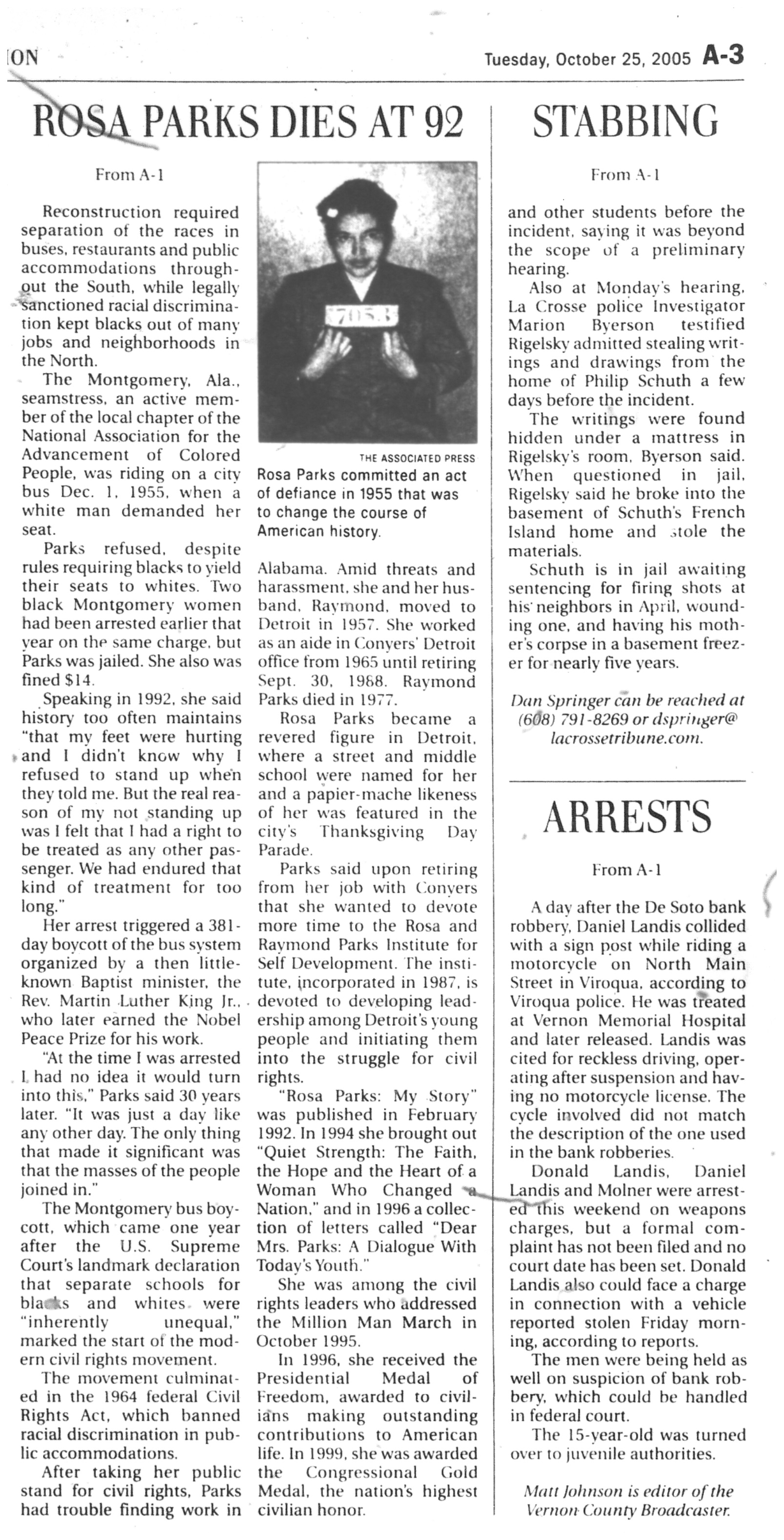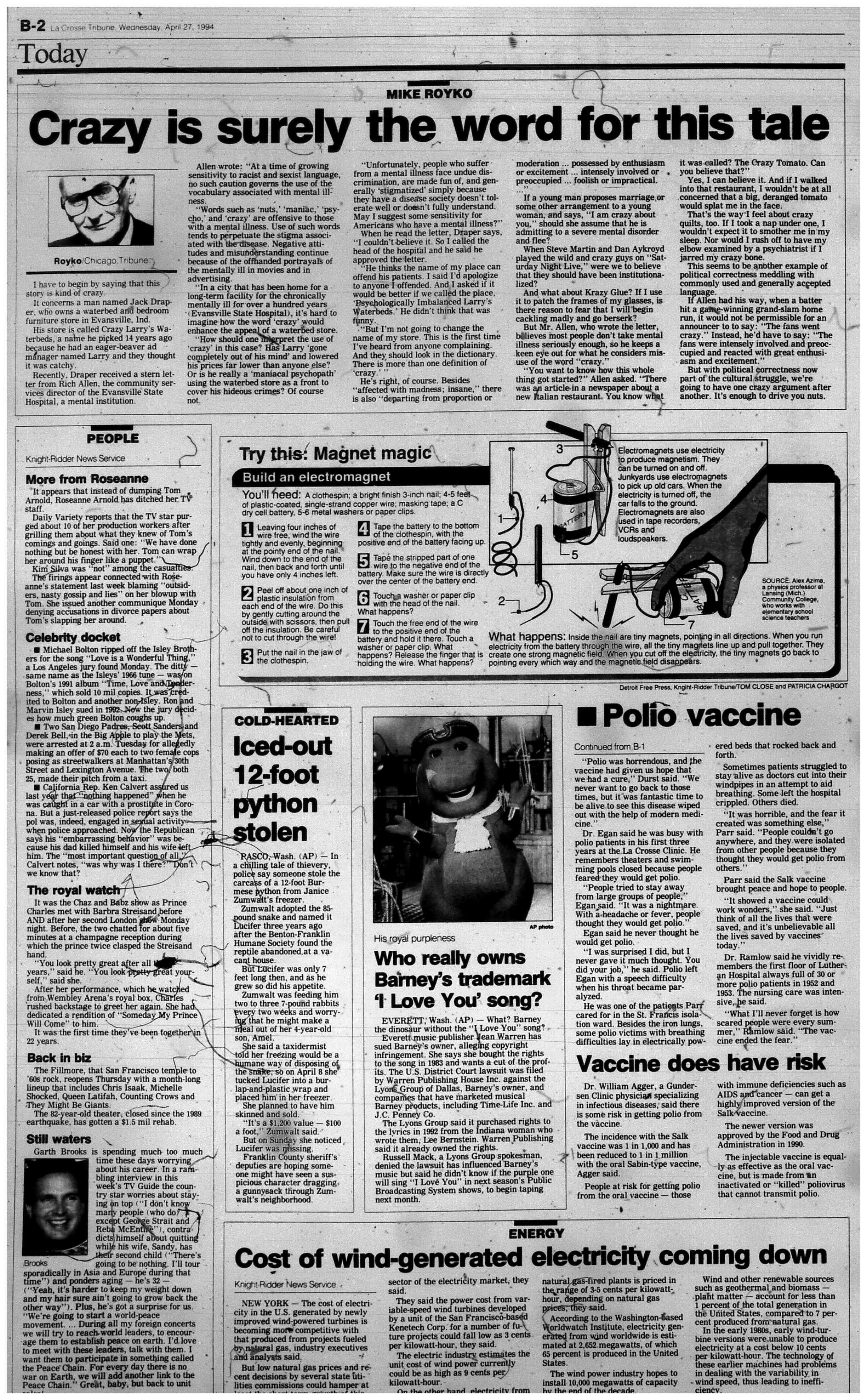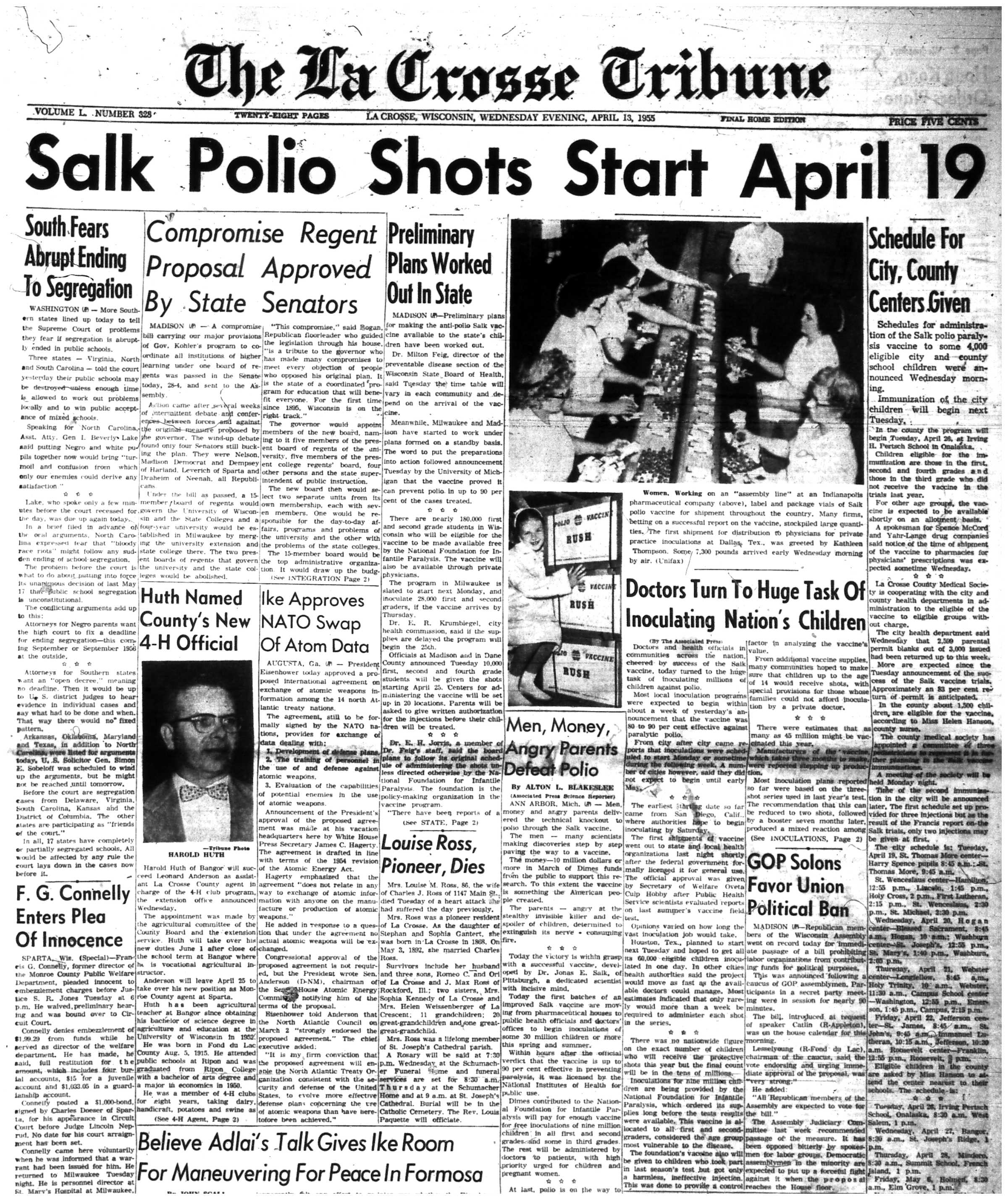 June 12, 1964, page 5 February 11, 1990, page A-1 February 11, 1990, page A-5 April 28, 1994, page A-12 December 6, 2013, page A-1 December 6, 2013, page A-7Polio