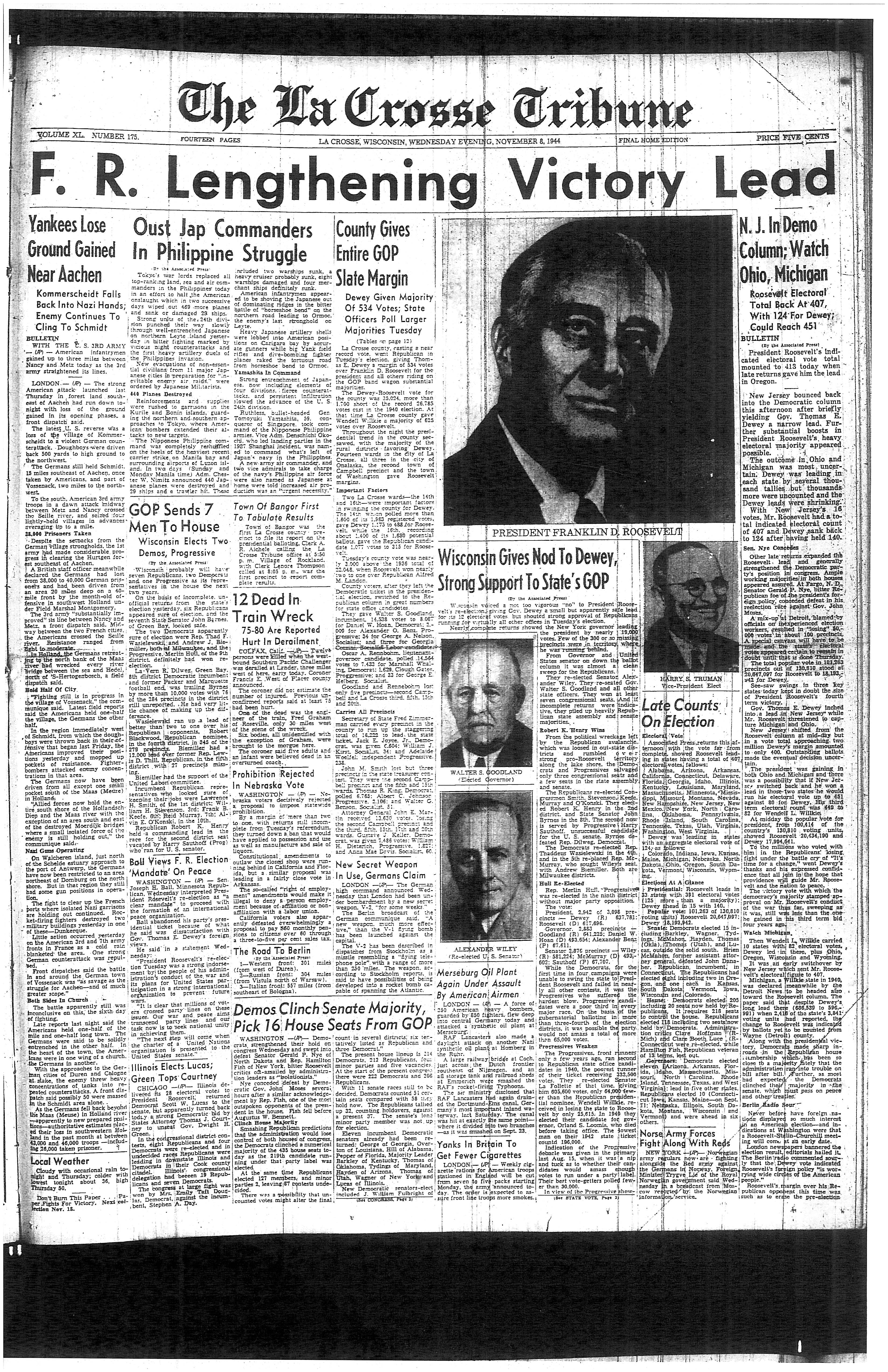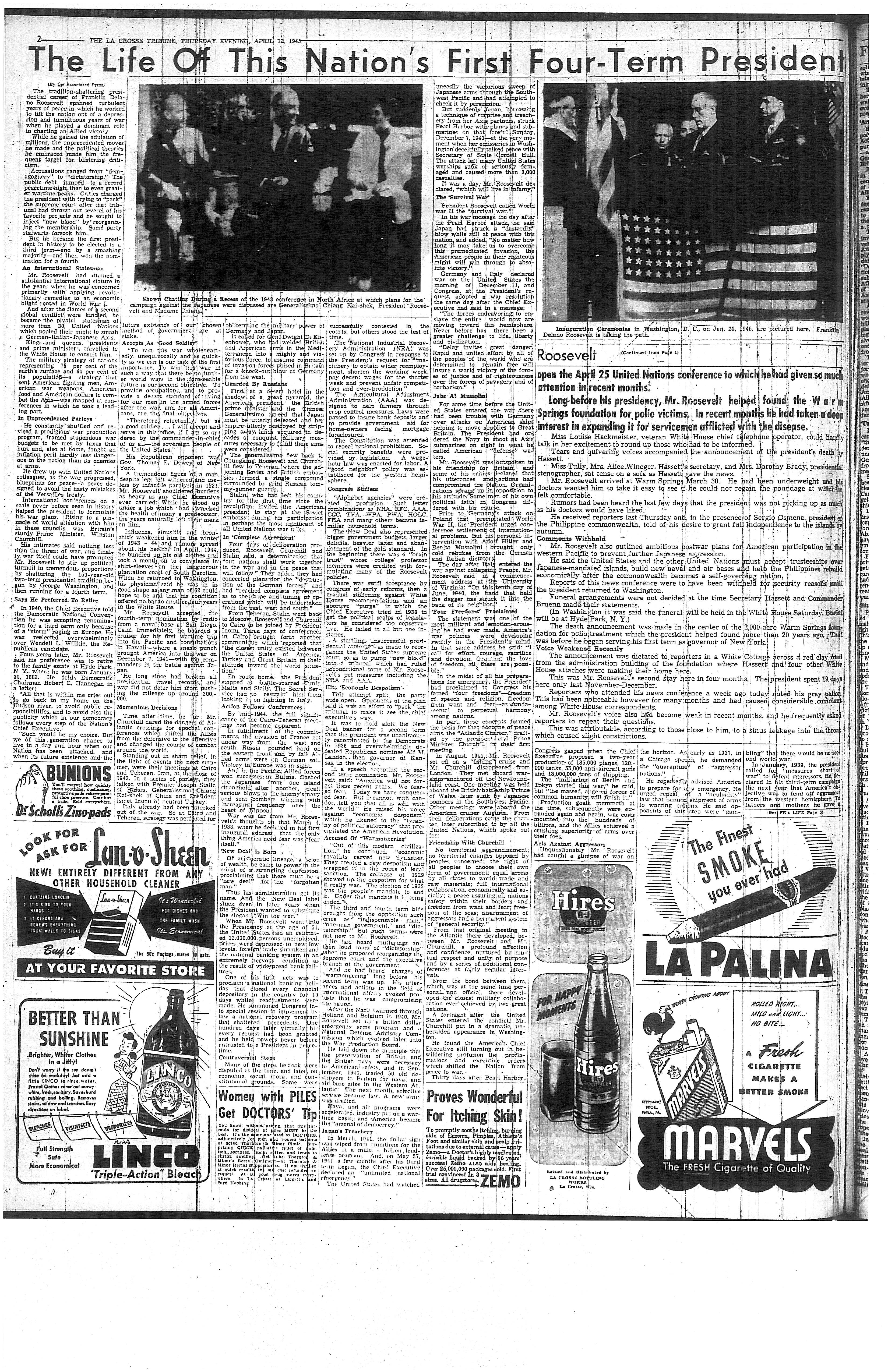 November 9, 1932, page 1 November 9, 1932, page 6 November 4, 1936, page 1 November 6, 1940, page 1 November 8, 1944, page 1 April 12, 1945, page 1 April 12, 1945, page 2 April 12, 1945, page 3Iran Hostage Crisis