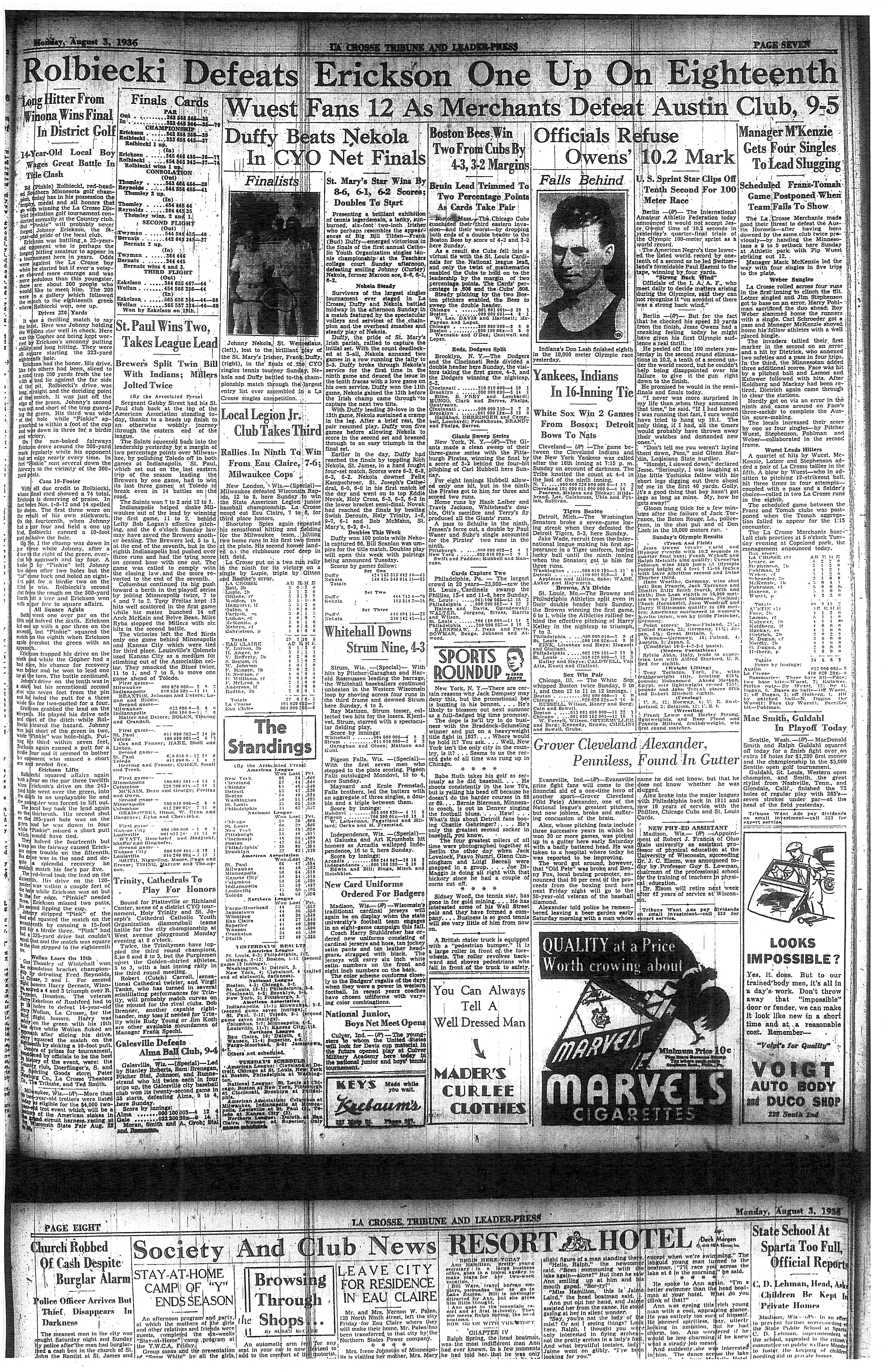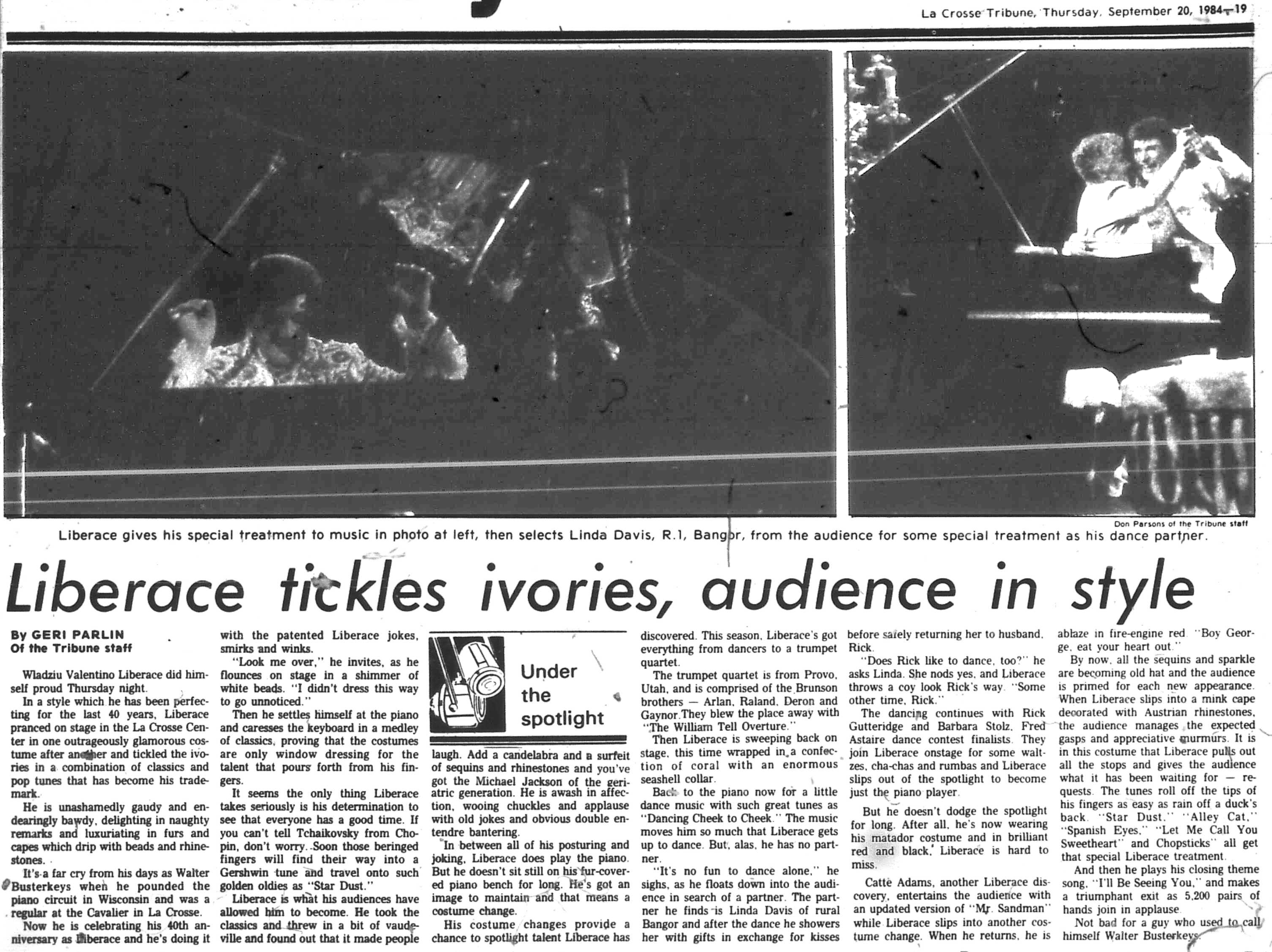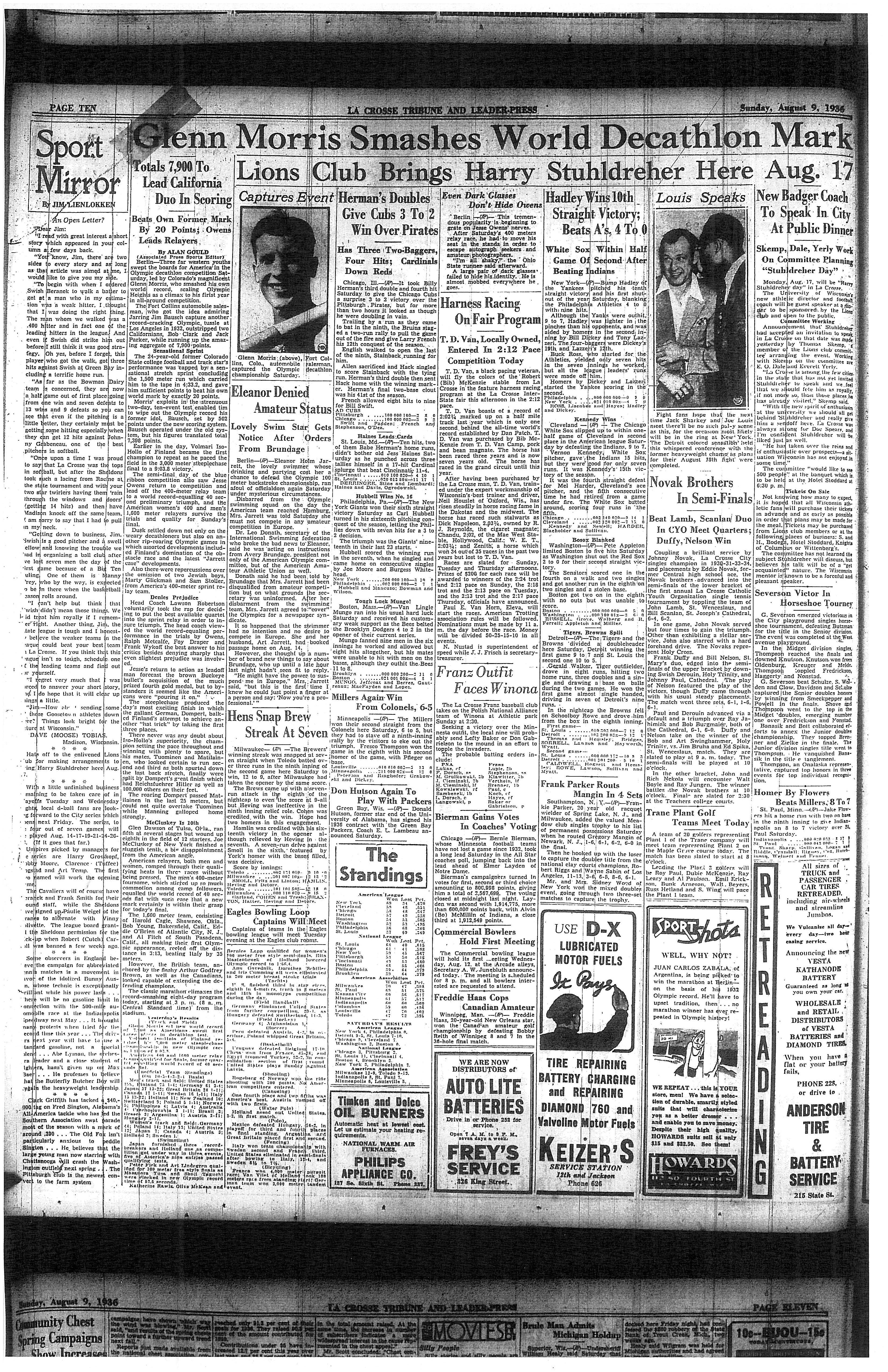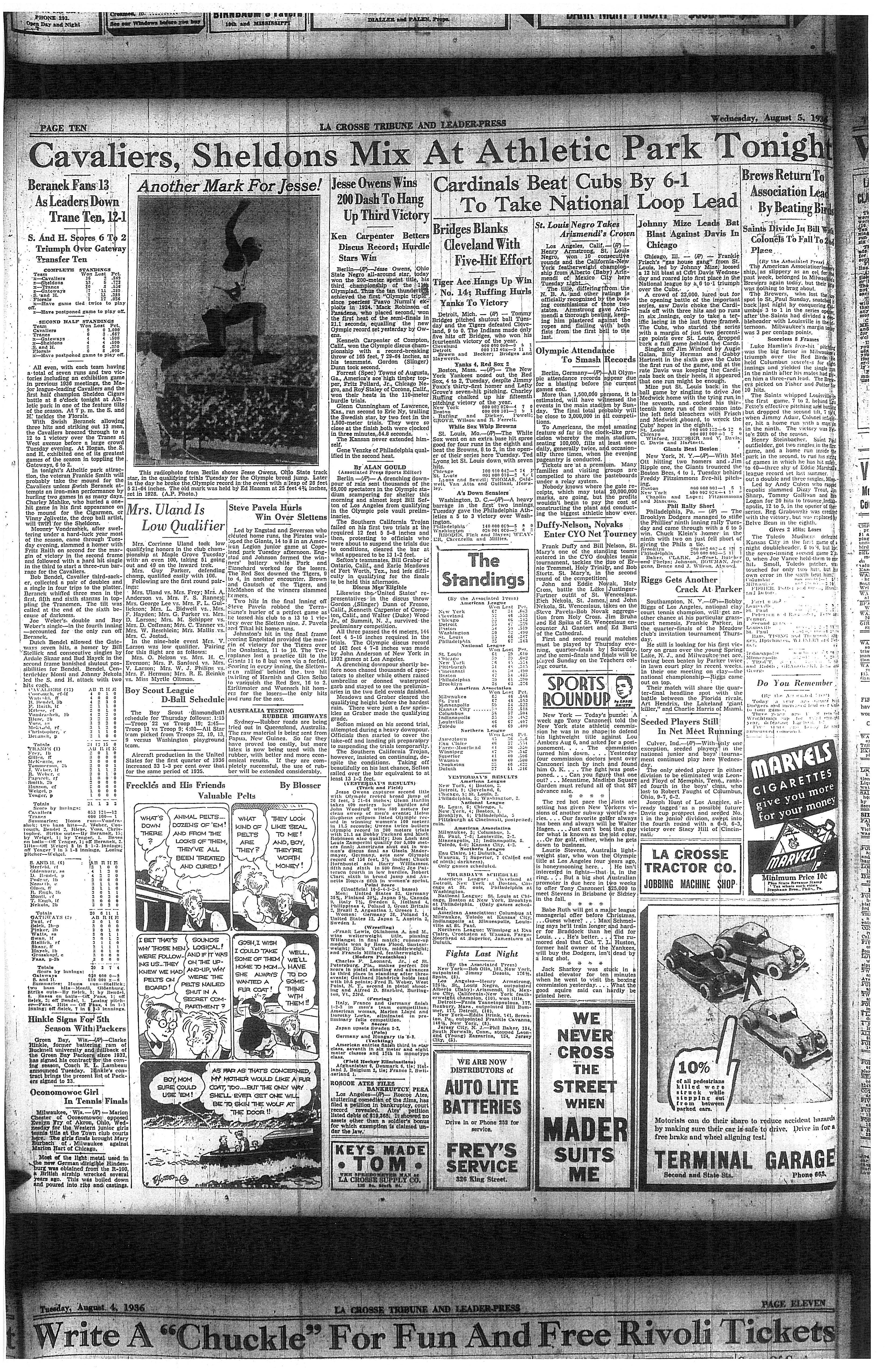 August 3, 1936, page 7 August 4, 1936, page 7 August 5, 1936, page 10 August 9, 1936, page 10 May 3, 1955, page 14 May 4, 1955, page 17Liberace