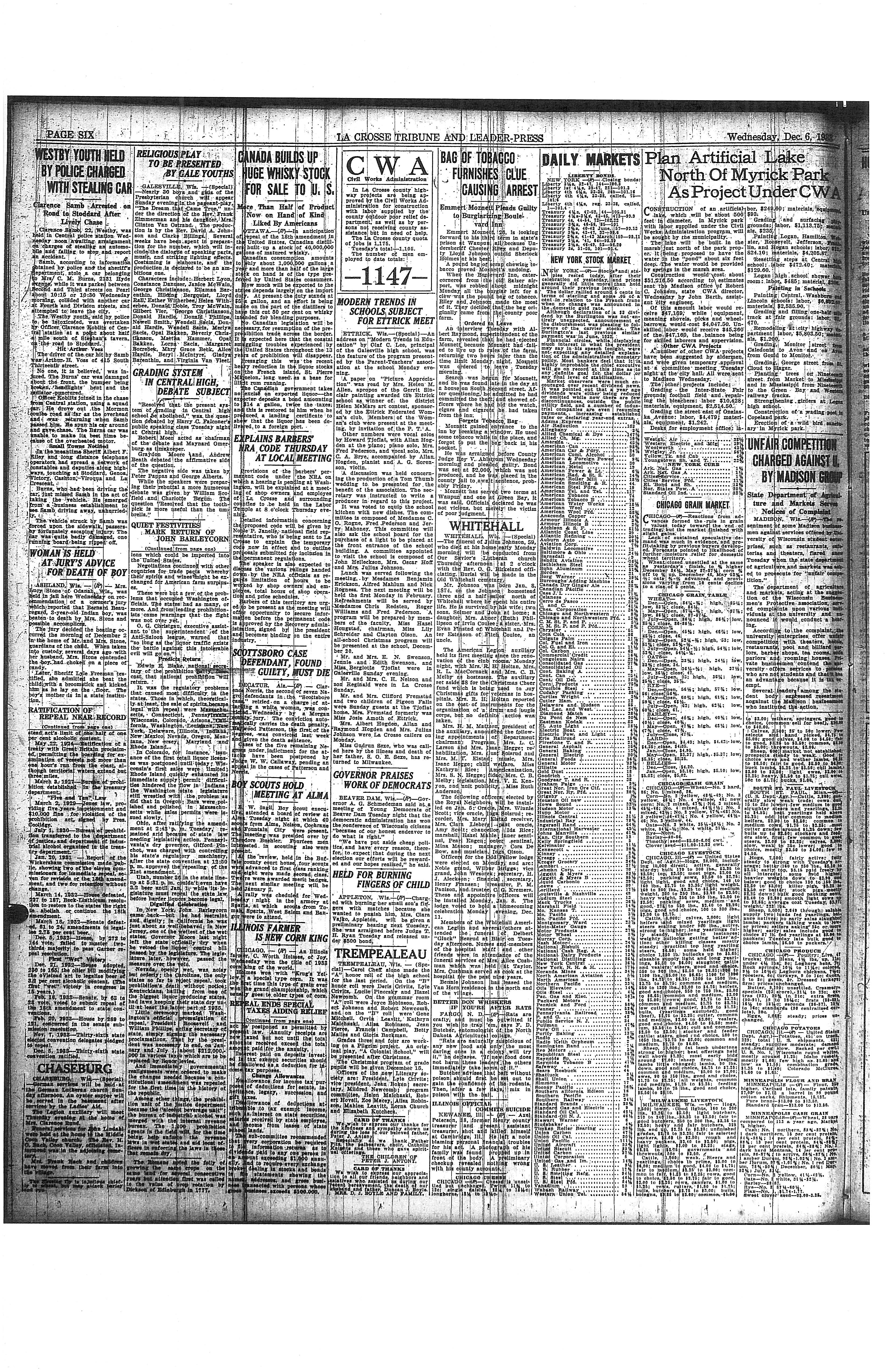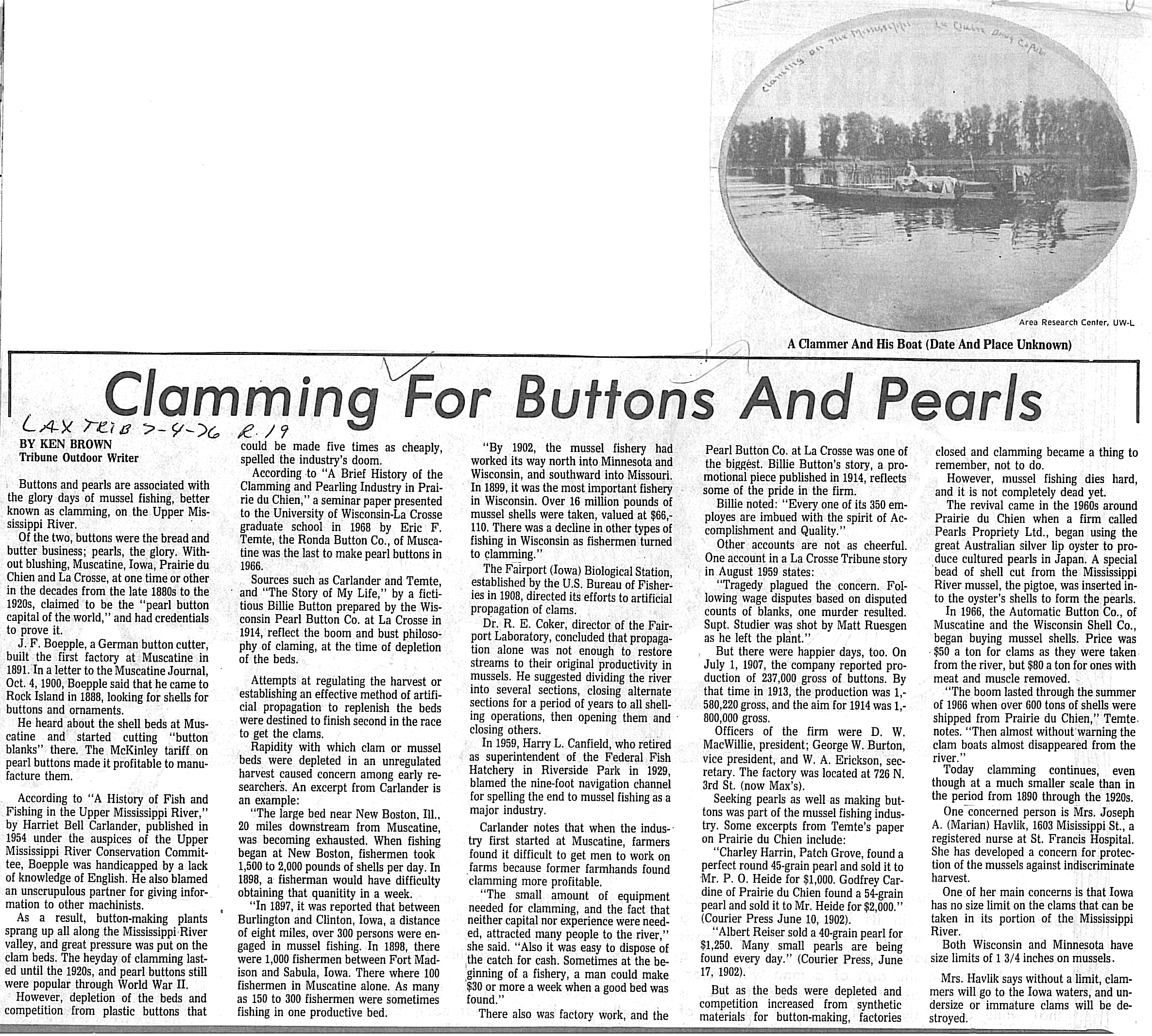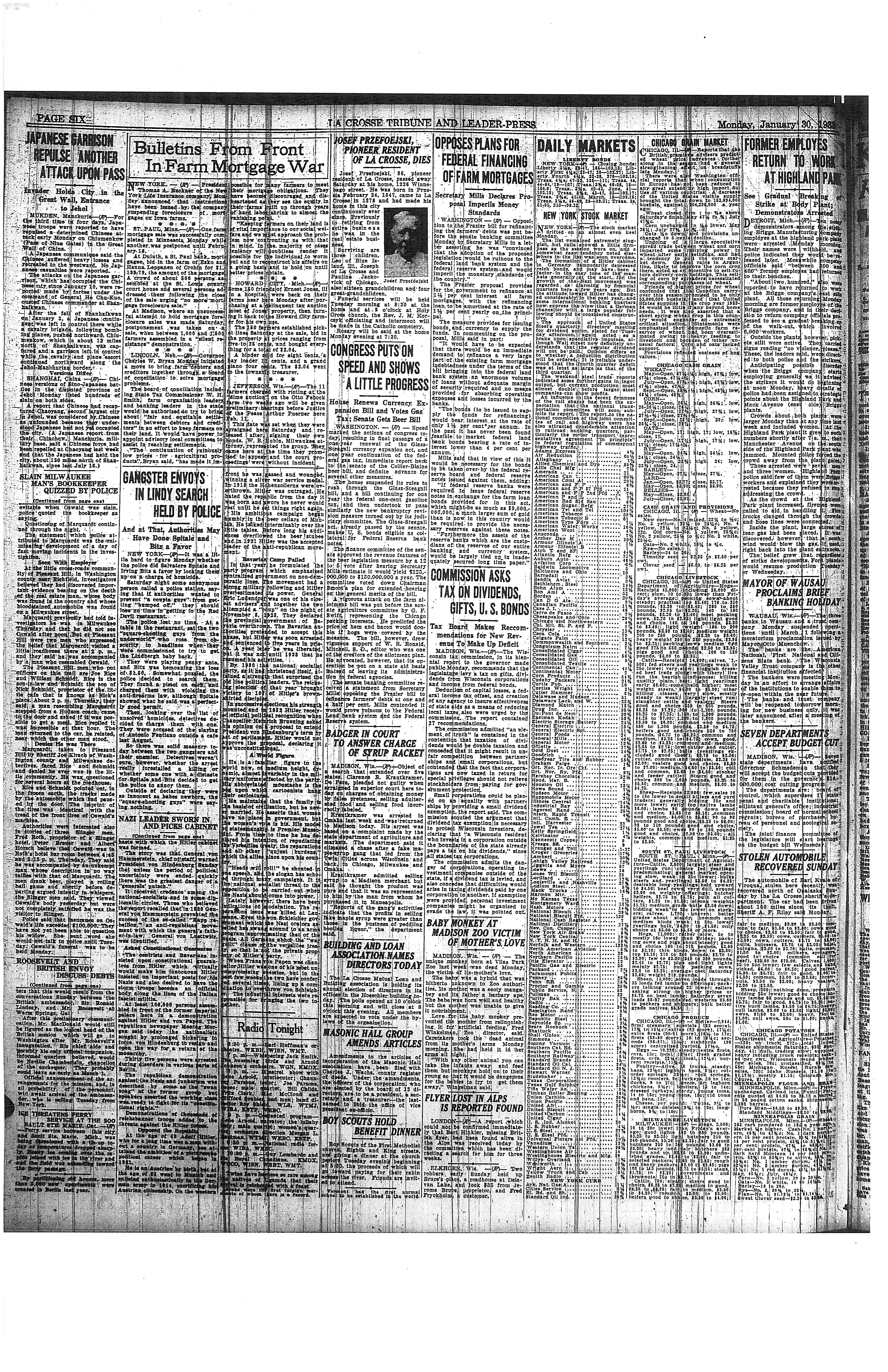 February 23, 1933, page 1 February 23, 1933, page 6 May 13, 1933, page 1 May 13, 1933, page 6 May 19, 1933, page 1 May 19, 1933, page 6 October 23, 1933, page 1 October 23, 1933, page 6 November 1, 1933, page 1 November 1, 1933, page 6Mississippi River Clamming