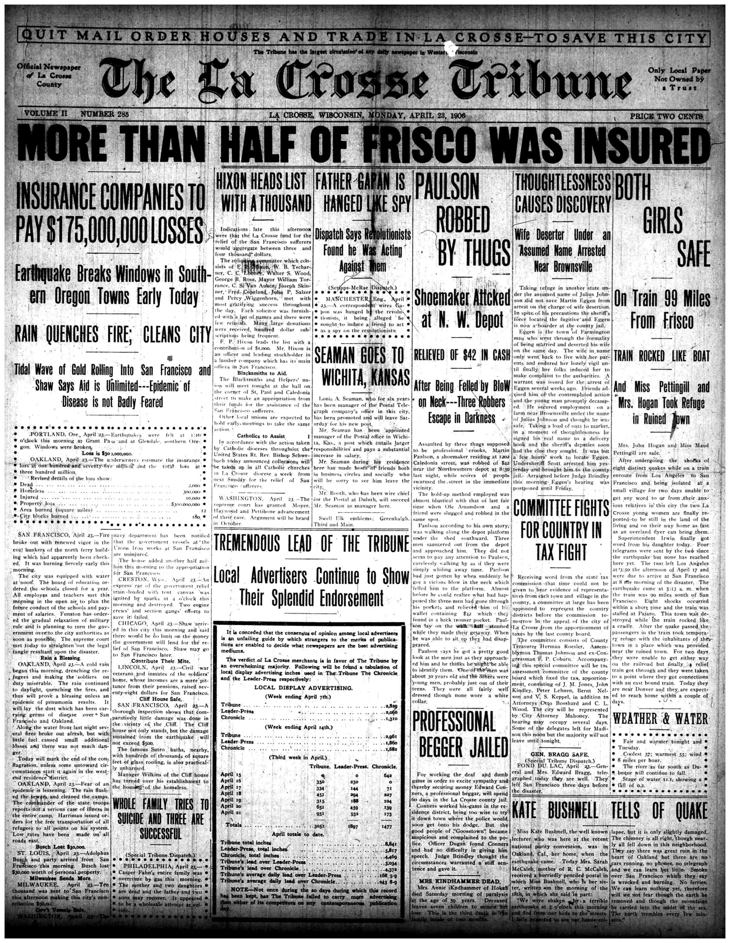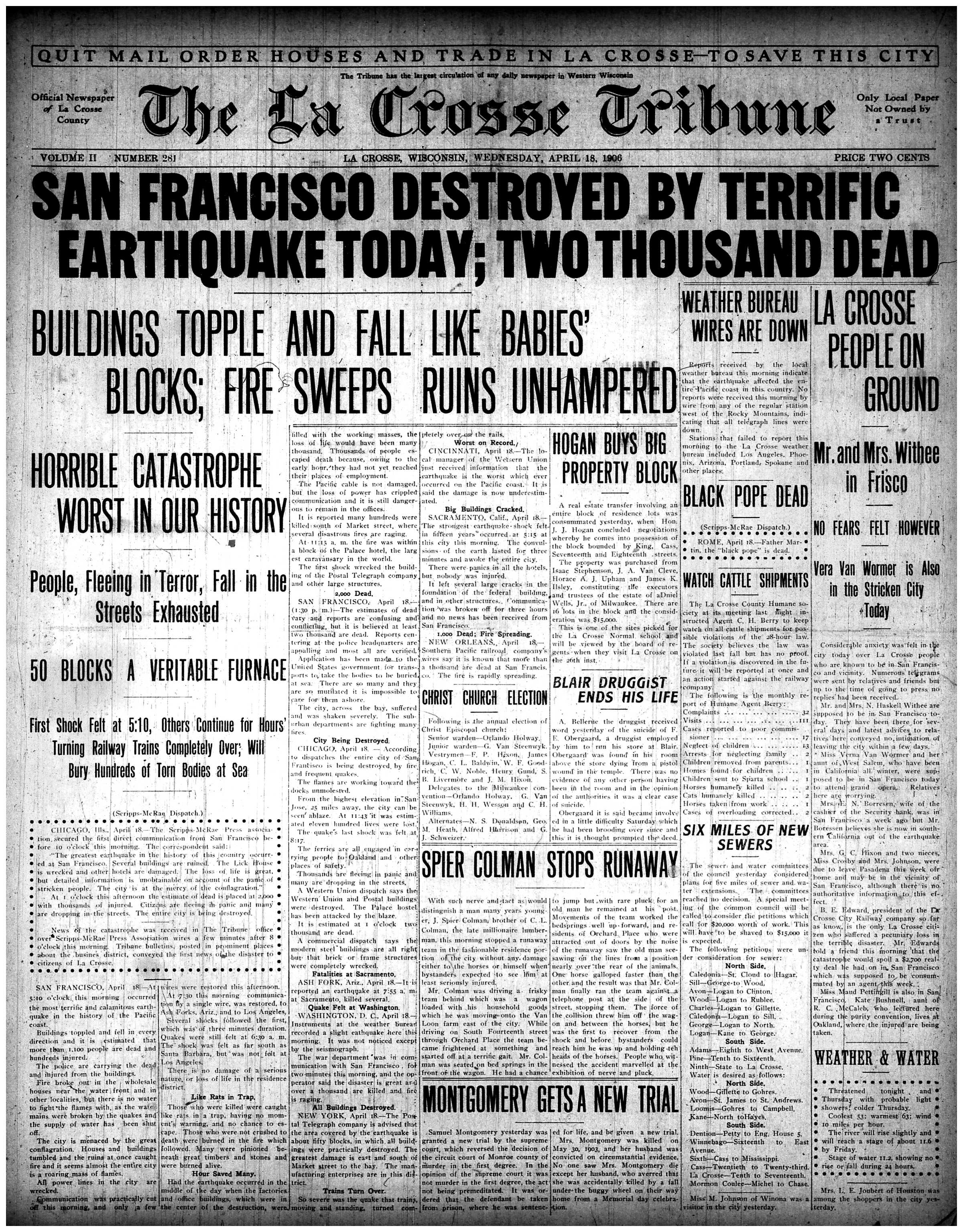 November 5, 1980, page 1 November 5, 1980, page 3 March 30, 1981, page 1 March 31, 1981, page 1 March 31, 1981, page 3 March 31, 1981, page 4 March 31, 1981, page 12 November 7, 1984, page 1 November 7, 1984, page 7 June 6, 2004, page A-1 June 6, 2004, page A-2San Francisco Earthquake, 1906