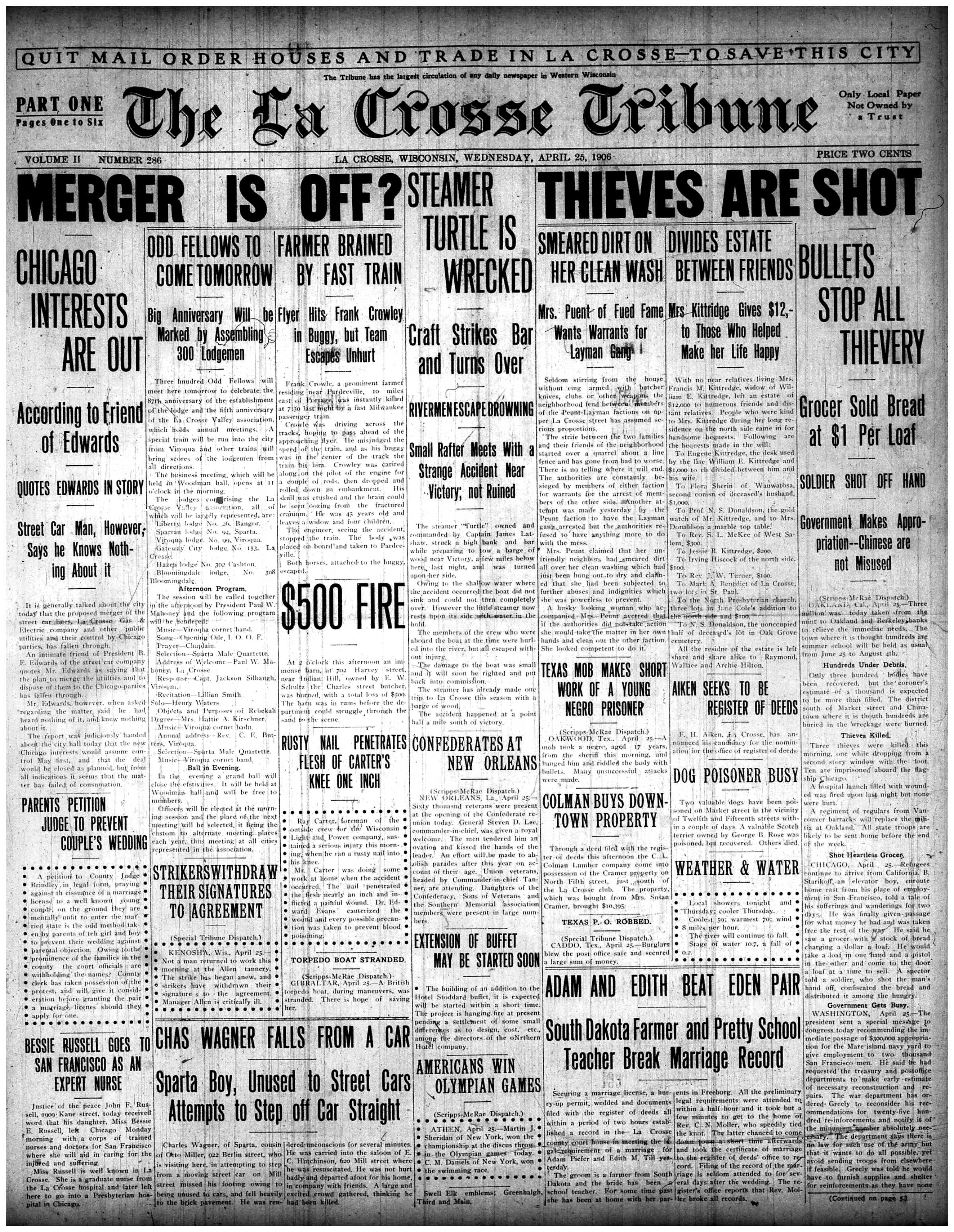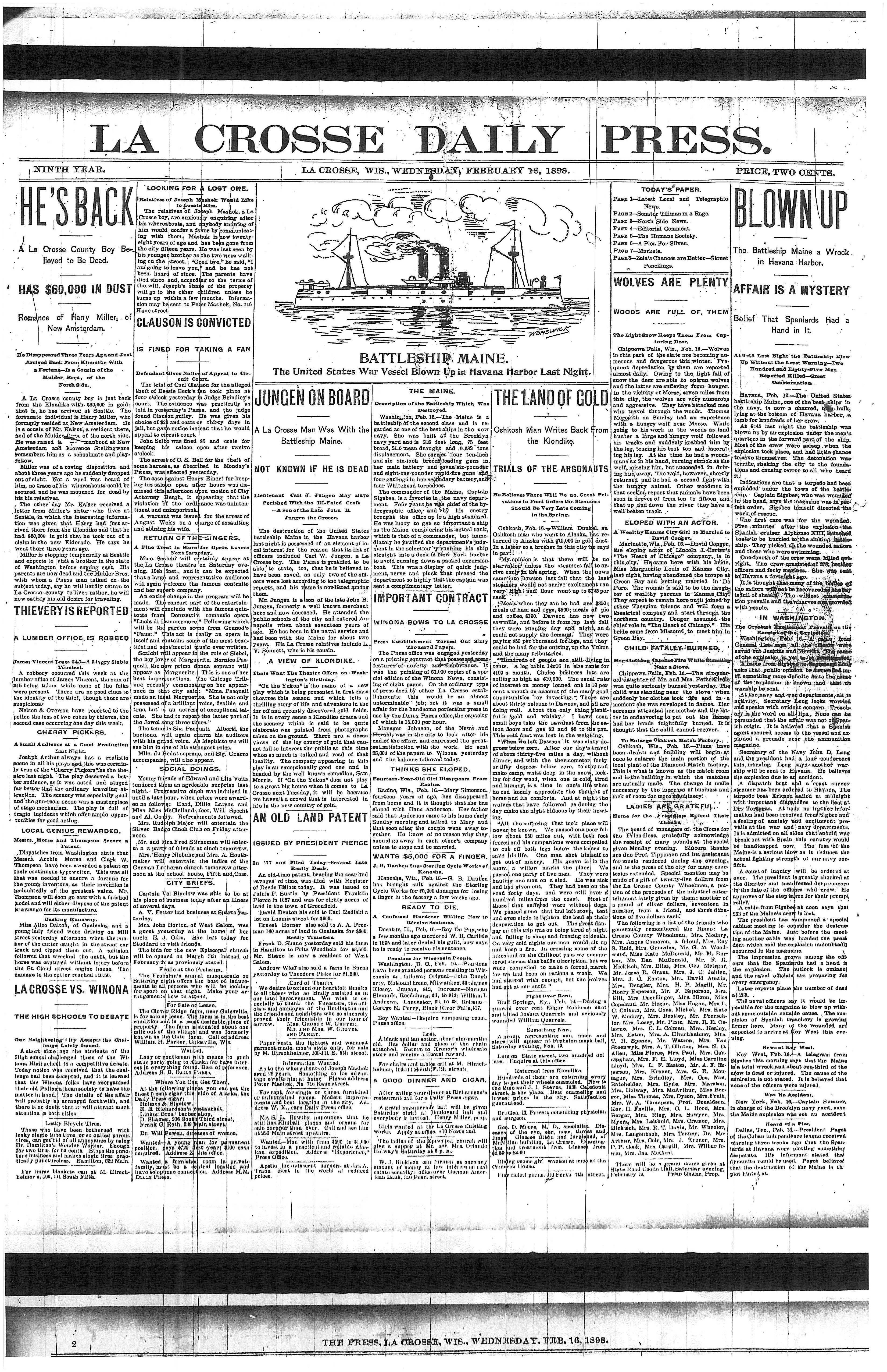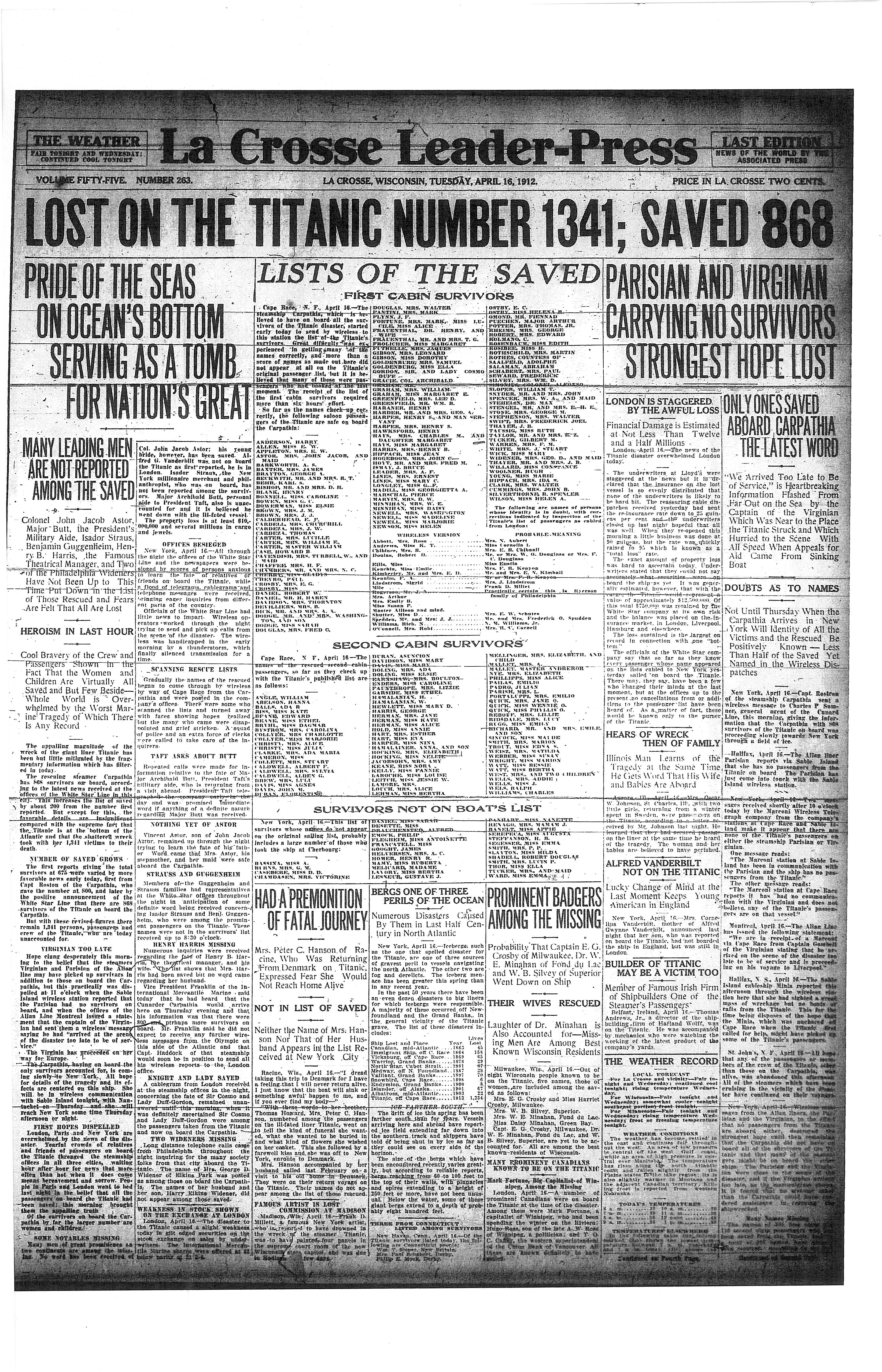 September 15, 1901, page 1 November 9, 1904, page 1 November 9, 1904, page 7 January 6, 1919, page 1 January 6, 1919, page 6Titanic
