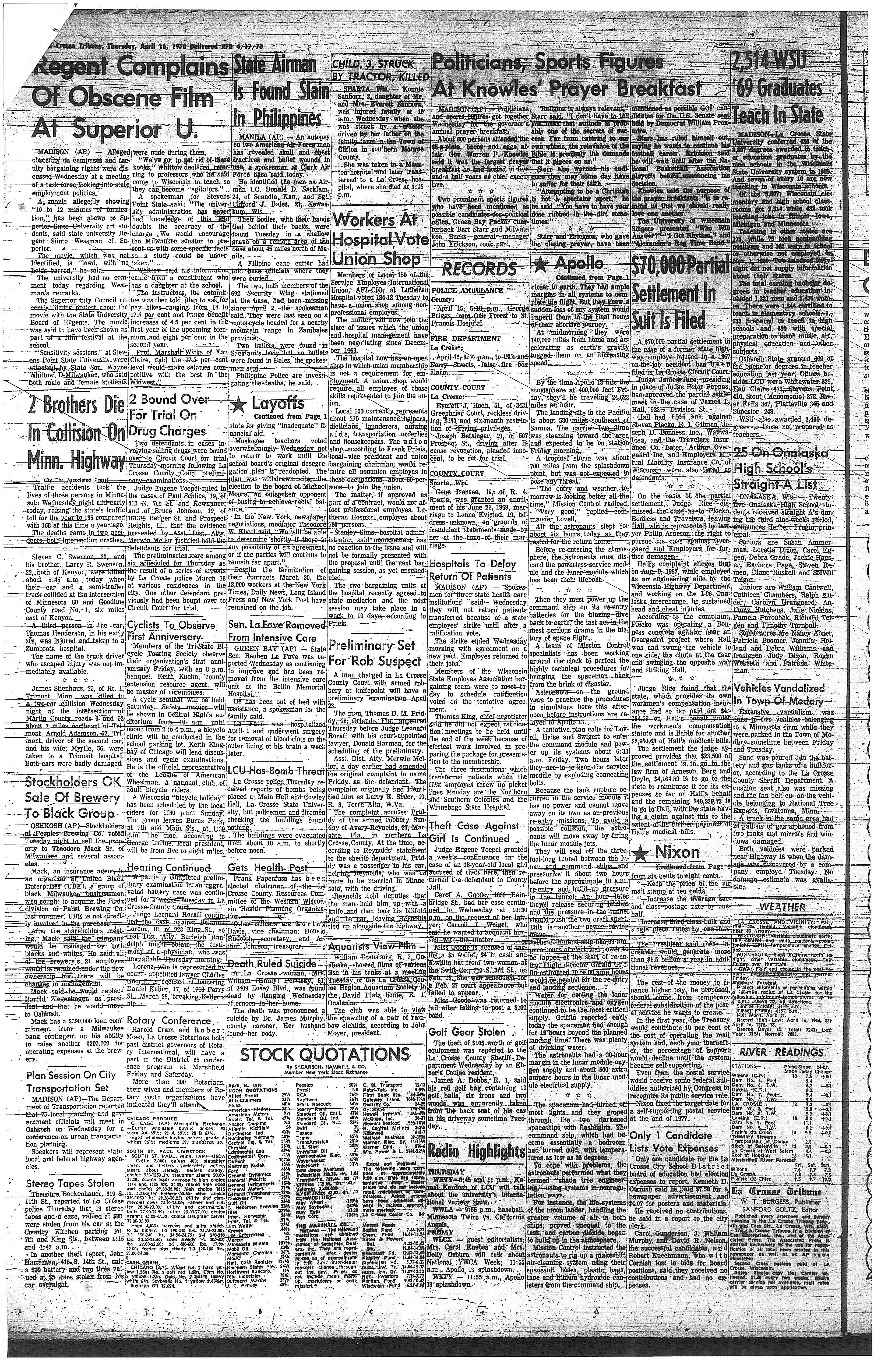 April 14, 1970, page 1 April 14, 1970, page 2 April 16, 1970, page 1 April 16, 1970, page 2 April 17, 1970, page 1April 17, 1970, page 2Teddy Roosevelt