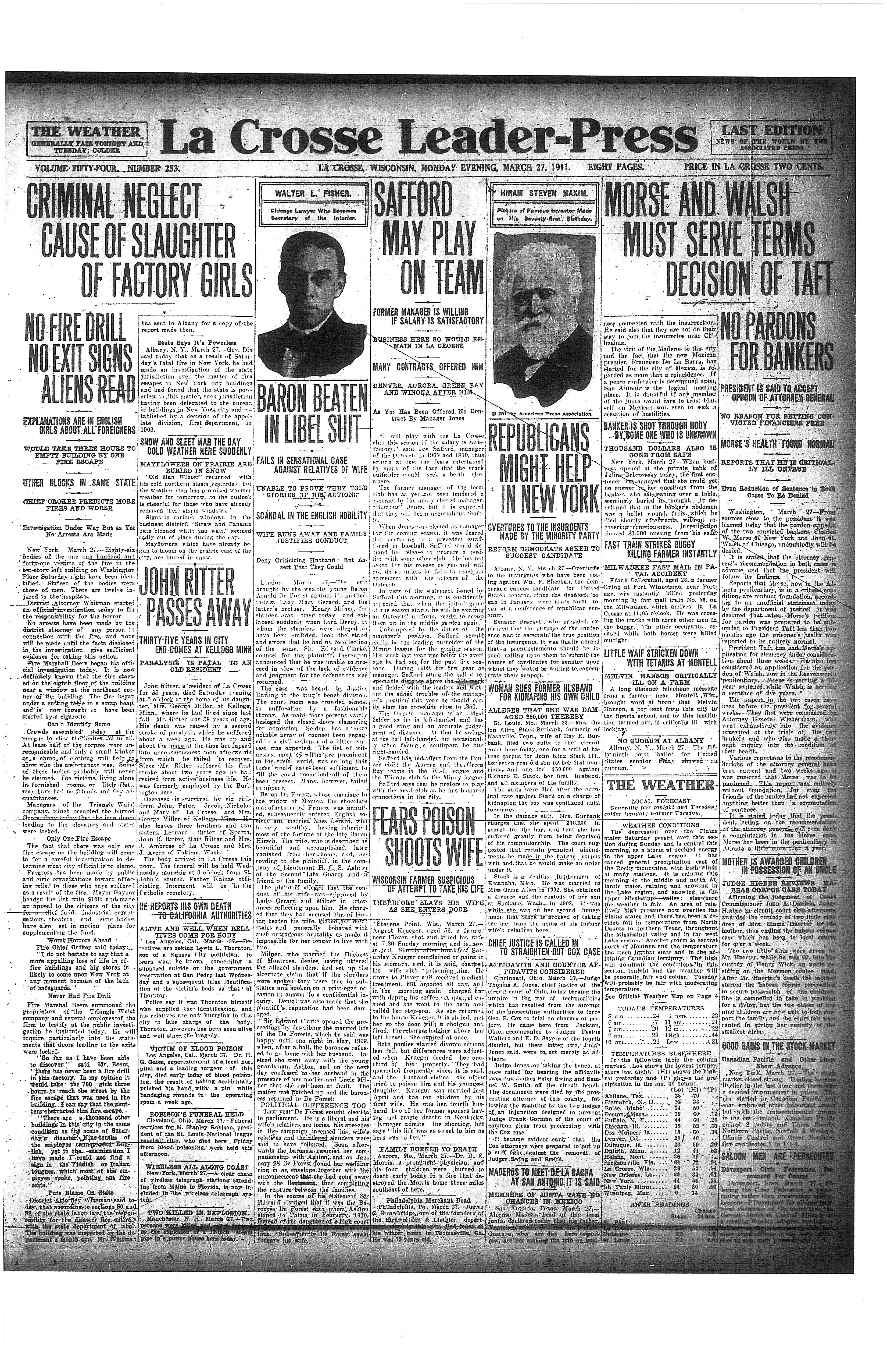 April 16, 1912, page 1 April 16, 1912, page 2 April 17, 1912, page 1 April 19, 1912, page 1 April 20, 1912, page 1Triangle Shirtwaist Fire