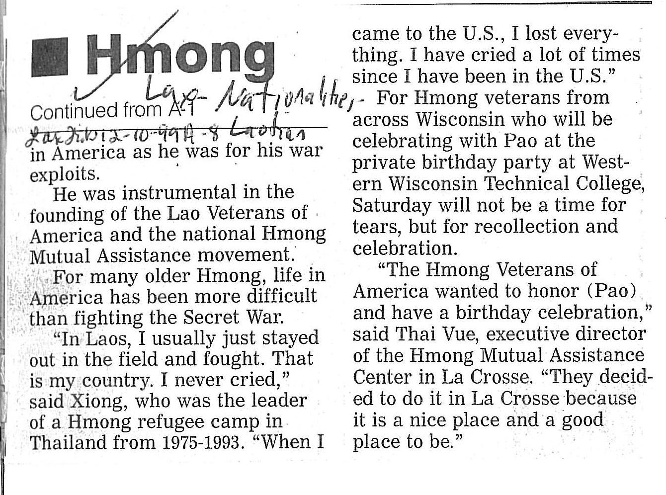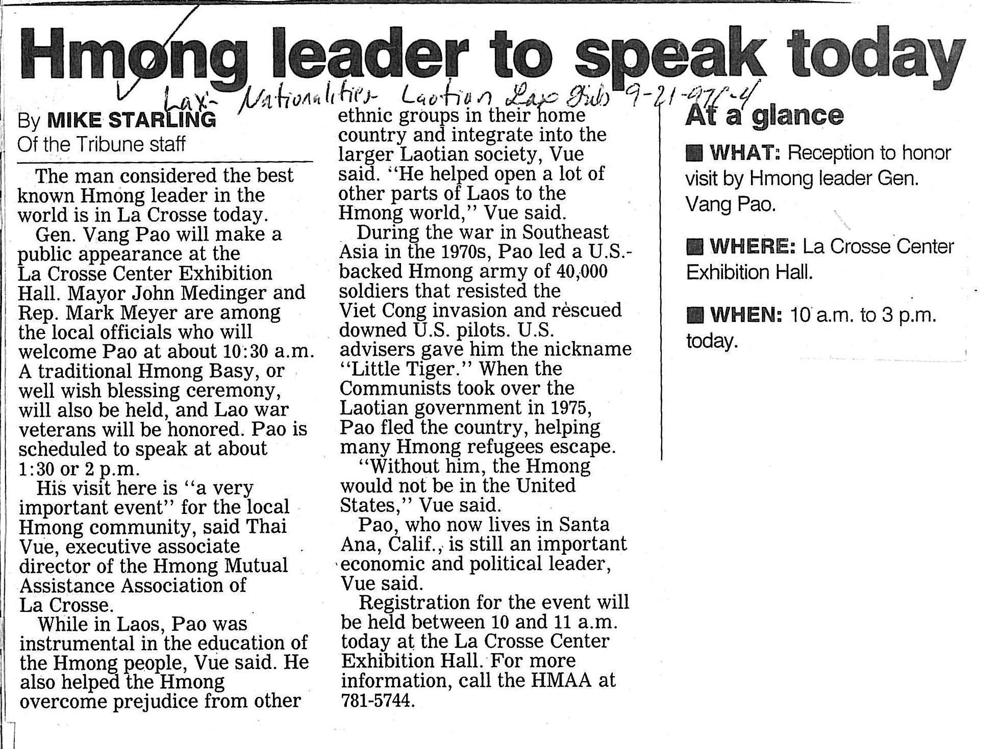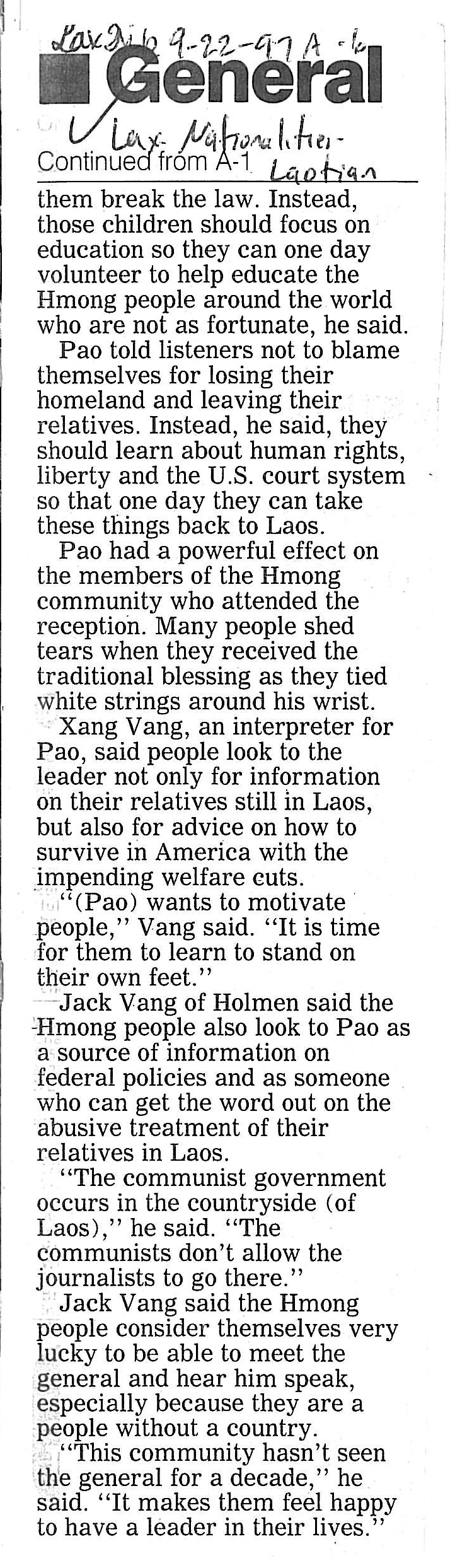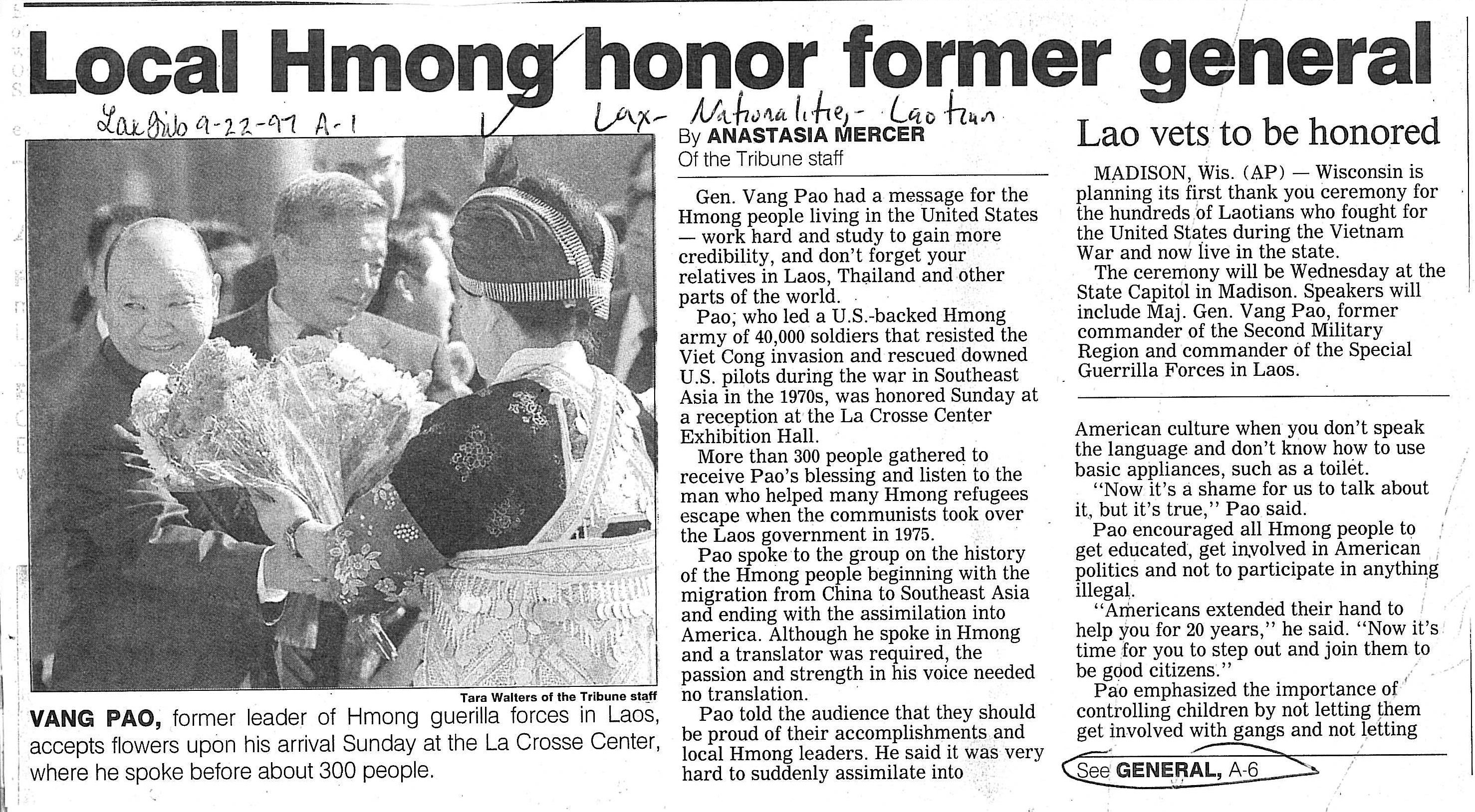 March 27, 1911, page 1Vietnam War — General Vang Pao
