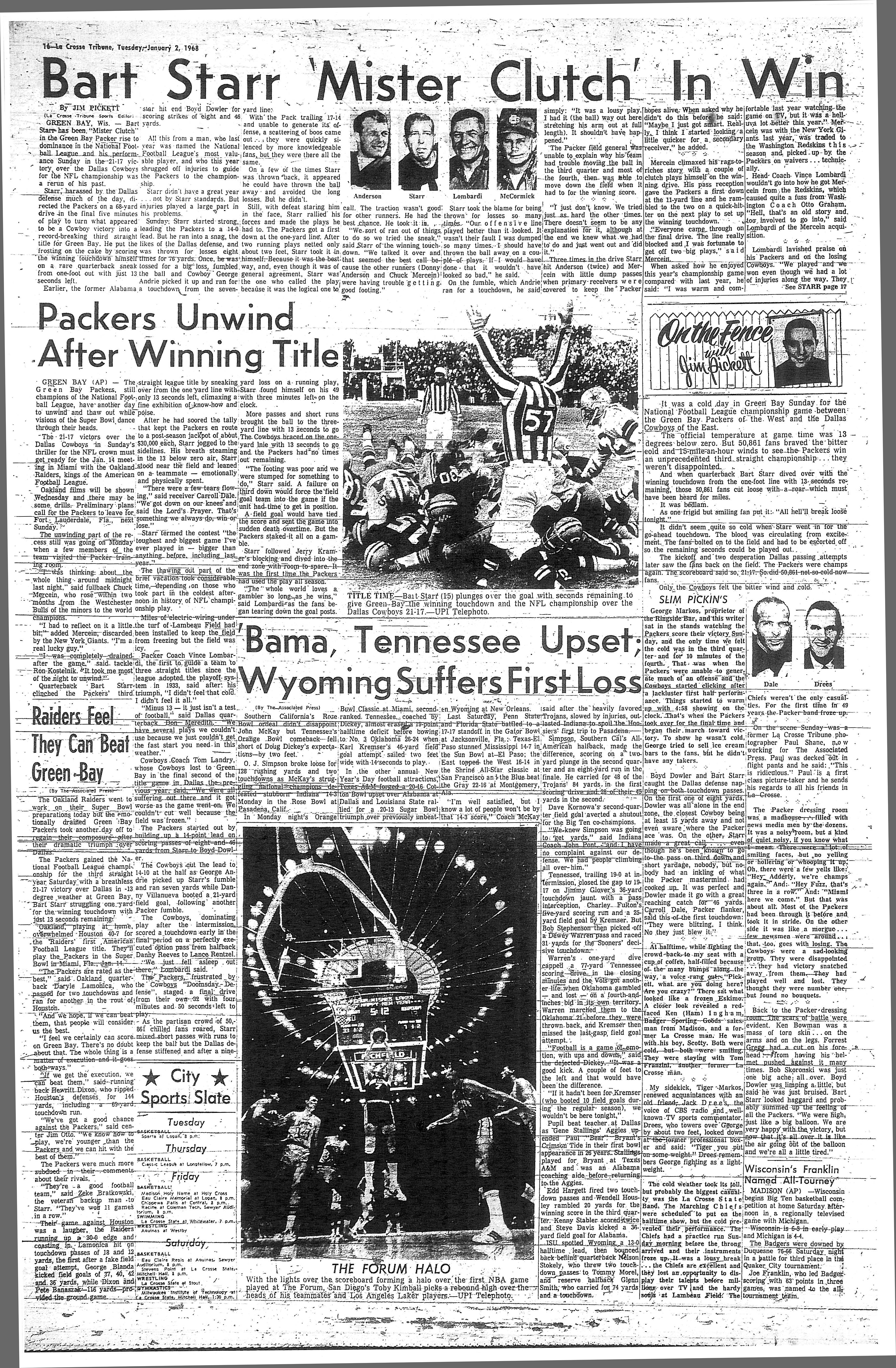 November 19, 1990, page A-6 September 21, 1997, page C-4 September 22, 1997, page A-1 September 22, 1997, page A-6 October 8, 1998, page C-1 October 11, 1998, page A-1 October 11, 1998, page A-6 December 10, 1999, page A-1 December 10, 1999, page A-8 August 29, 2008, page B-1Vince Lombardi
