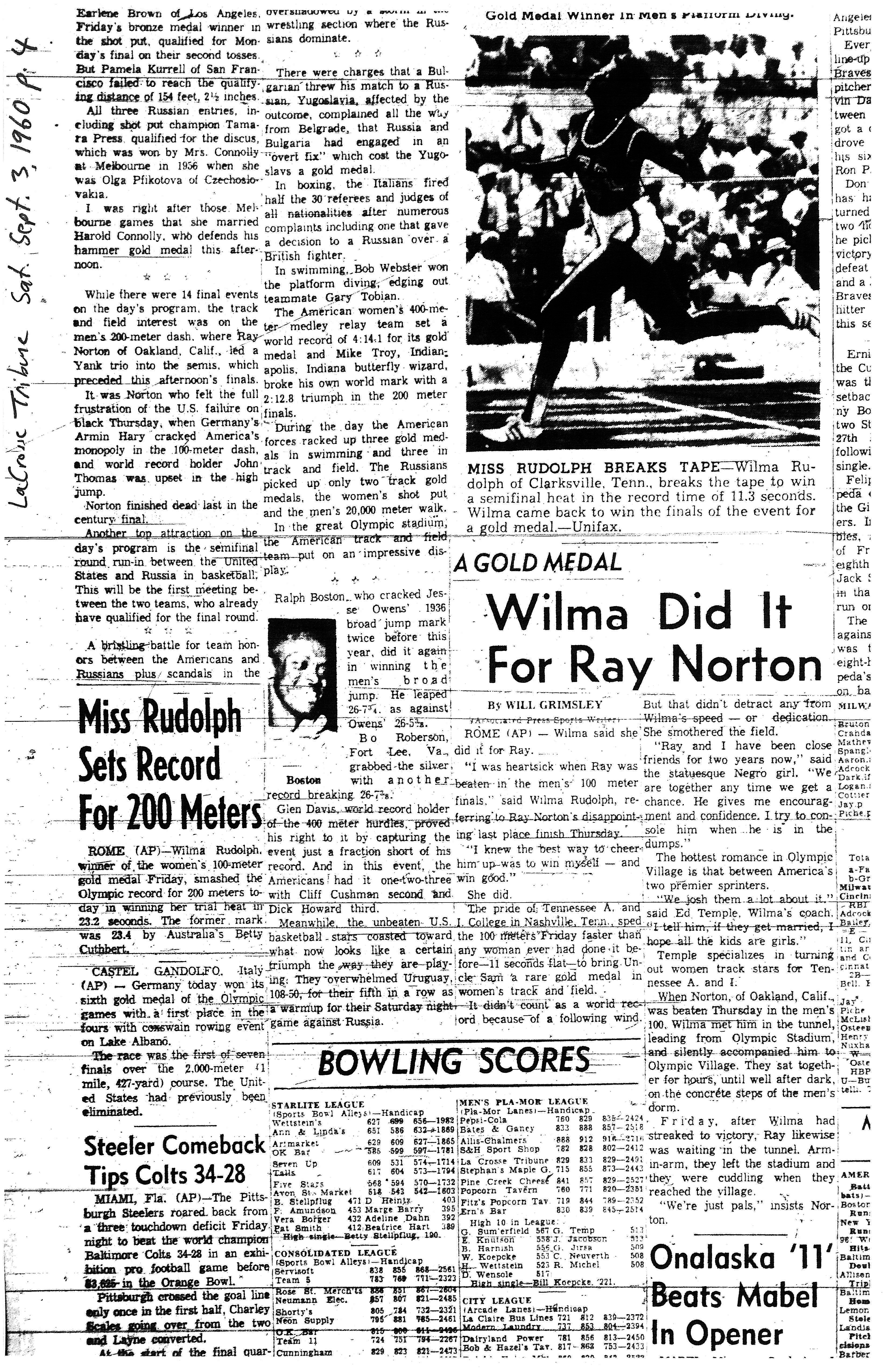 January 16, 1967, page 15 January 16, 1967, page 16 January 2, 1968, page 16 January 2, 1968, page 17 January 15, 1968, page 14 January 15, 1968, page 15 September 3, 1970, page 15 September 4, 1970, page 5Wilma Rudolph