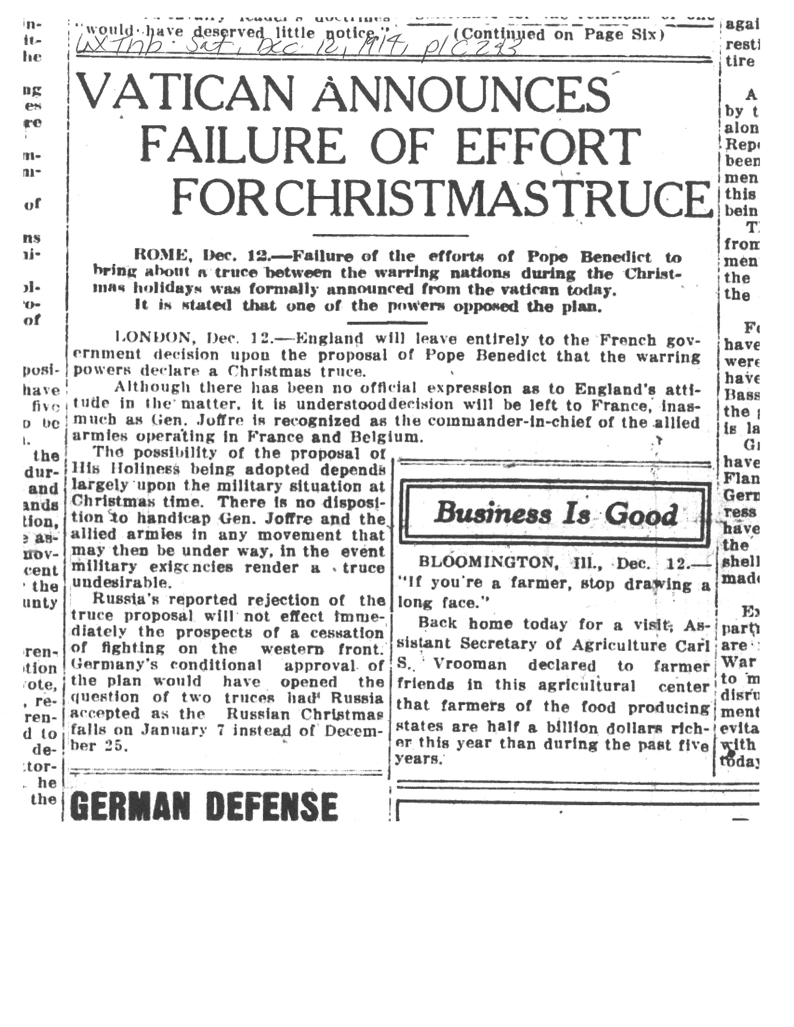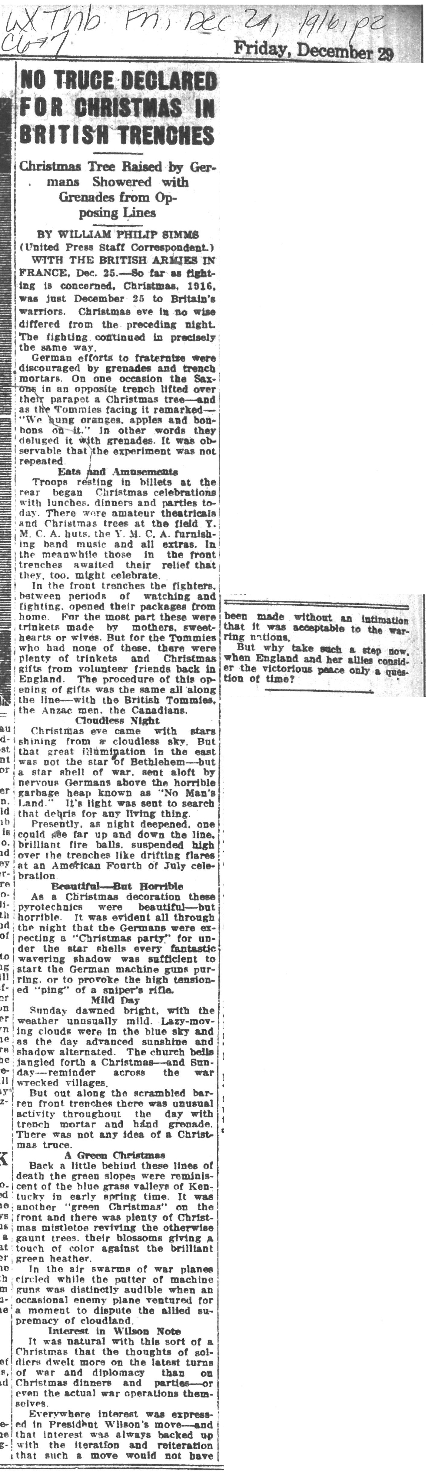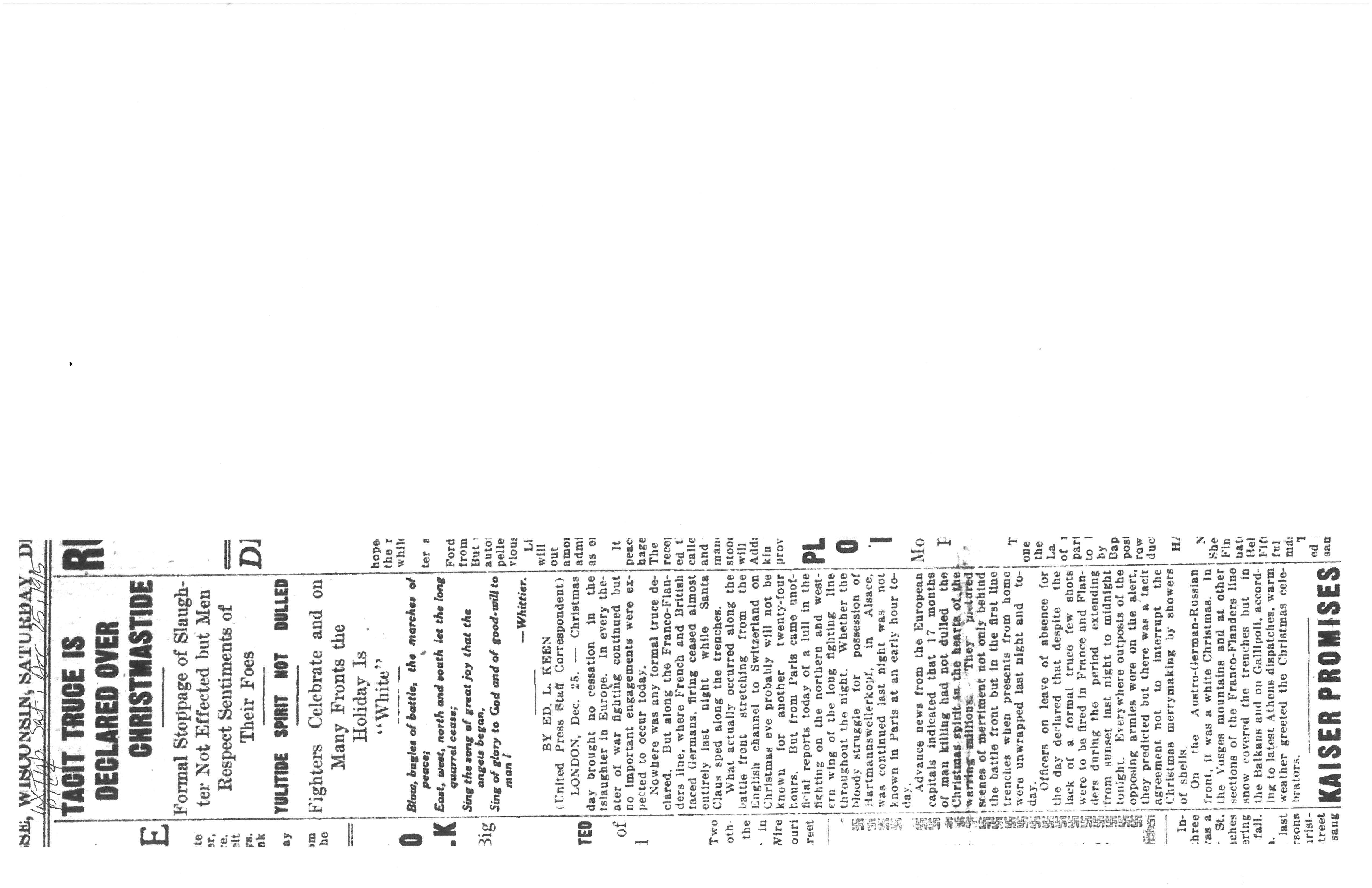 January 15, 1912, page 1, part 1 January 15, 1912, page 1, part 2 January 15, 1912, page 1, part 3 March 3, 1913, page 1, part 1 March 3, 1913, page 6, part 2 July 20, 1917, page 15 August 18, 1920, page 1, part 1 August 18, 1920, page 6, part 2 August 20, 1920, page 1 August 26, 1920, page 1, part 1 August 26, 1920, page 6, part 2World War I — Christmas Truce