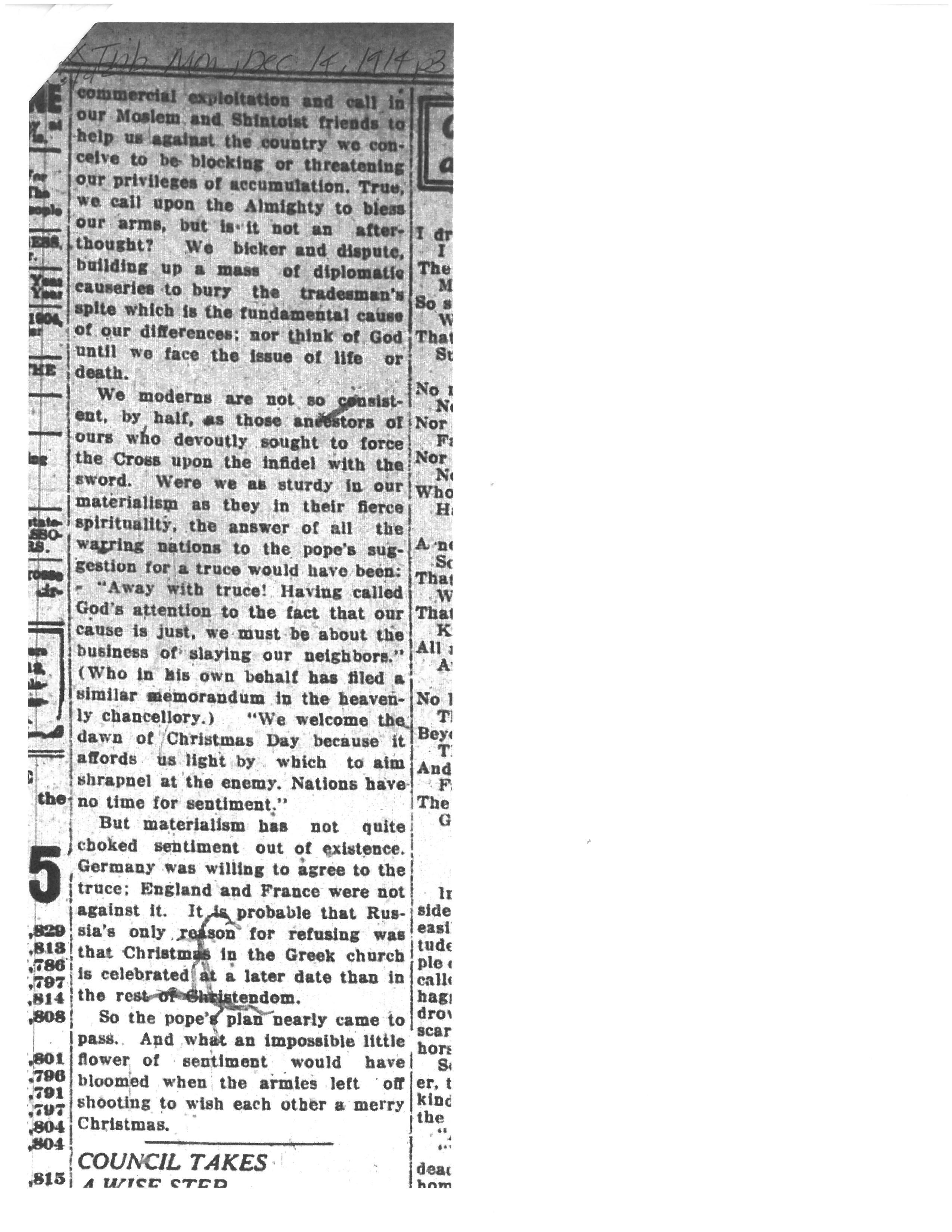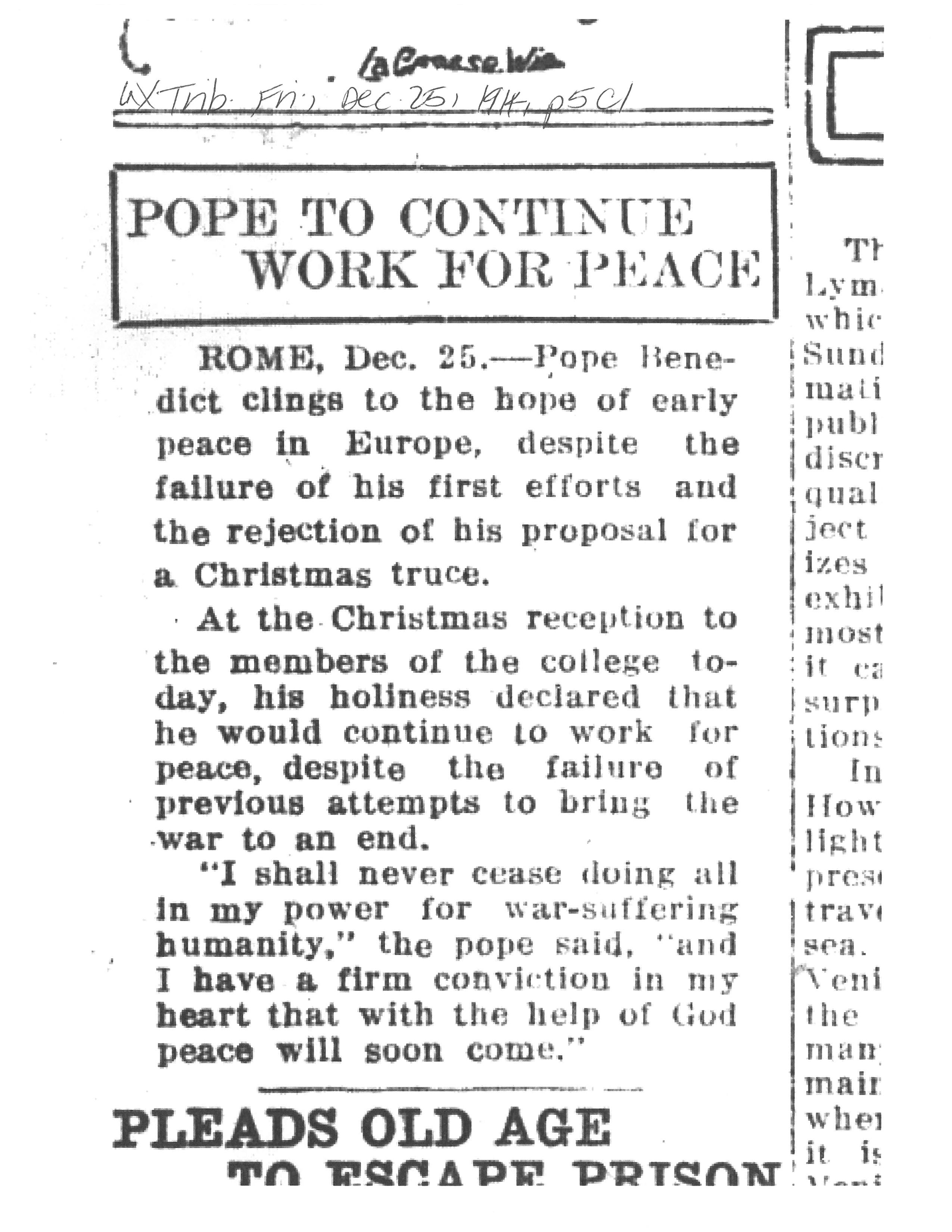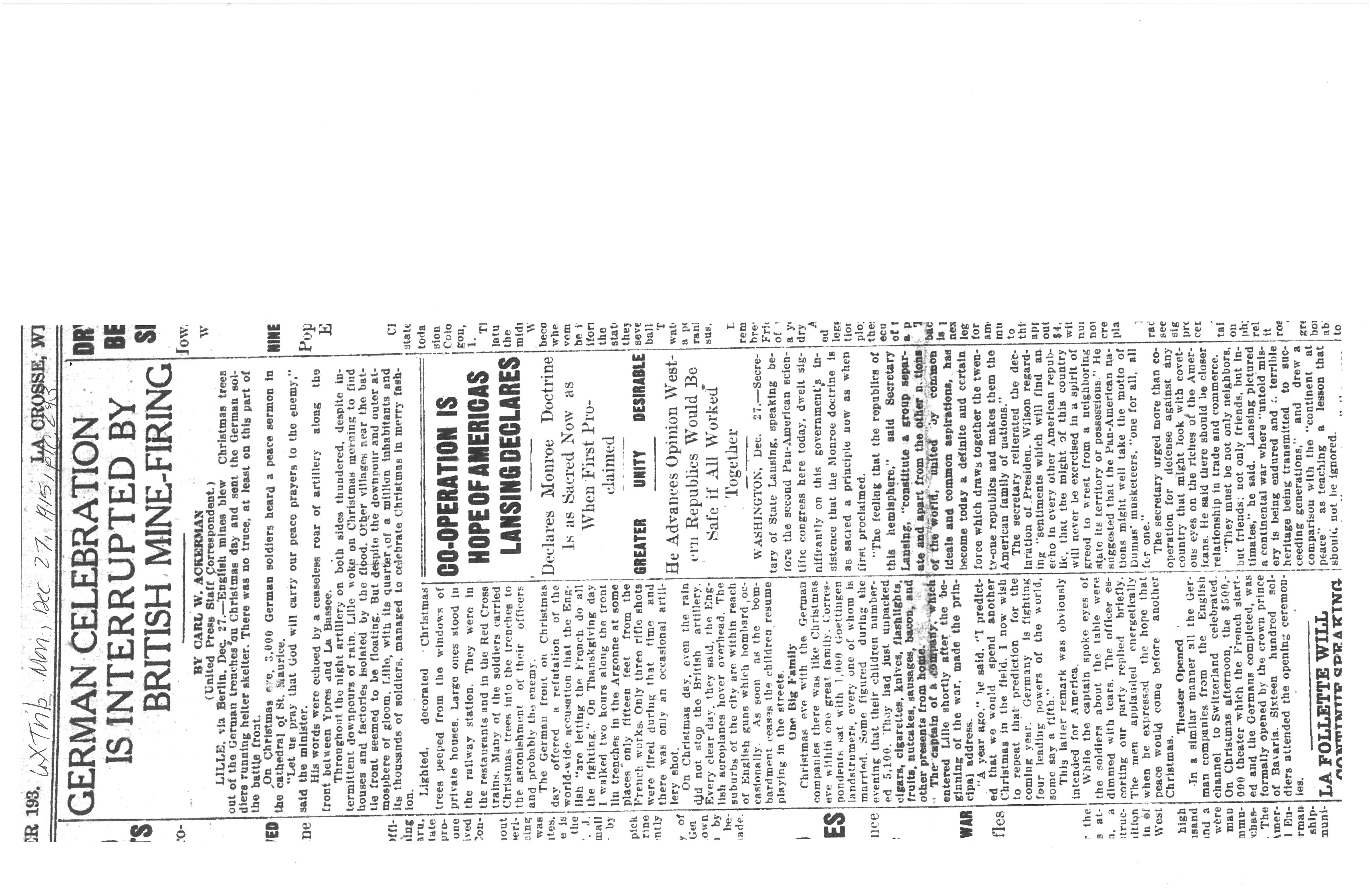 January 15, 1912, page 1, part 1 January 15, 1912, page 1, part 2 January 15, 1912, page 1, part 3 March 3, 1913, page 1, part 1 March 3, 1913, page 6, part 2 July 20, 1917, page 15 August 18, 1920, page 1, part 1 August 18, 1920, page 6, part 2 August 20, 1920, page 1 August 26, 1920, page 1, part 1 August 26, 1920, page 6, part 2World War I — Christmas Truce