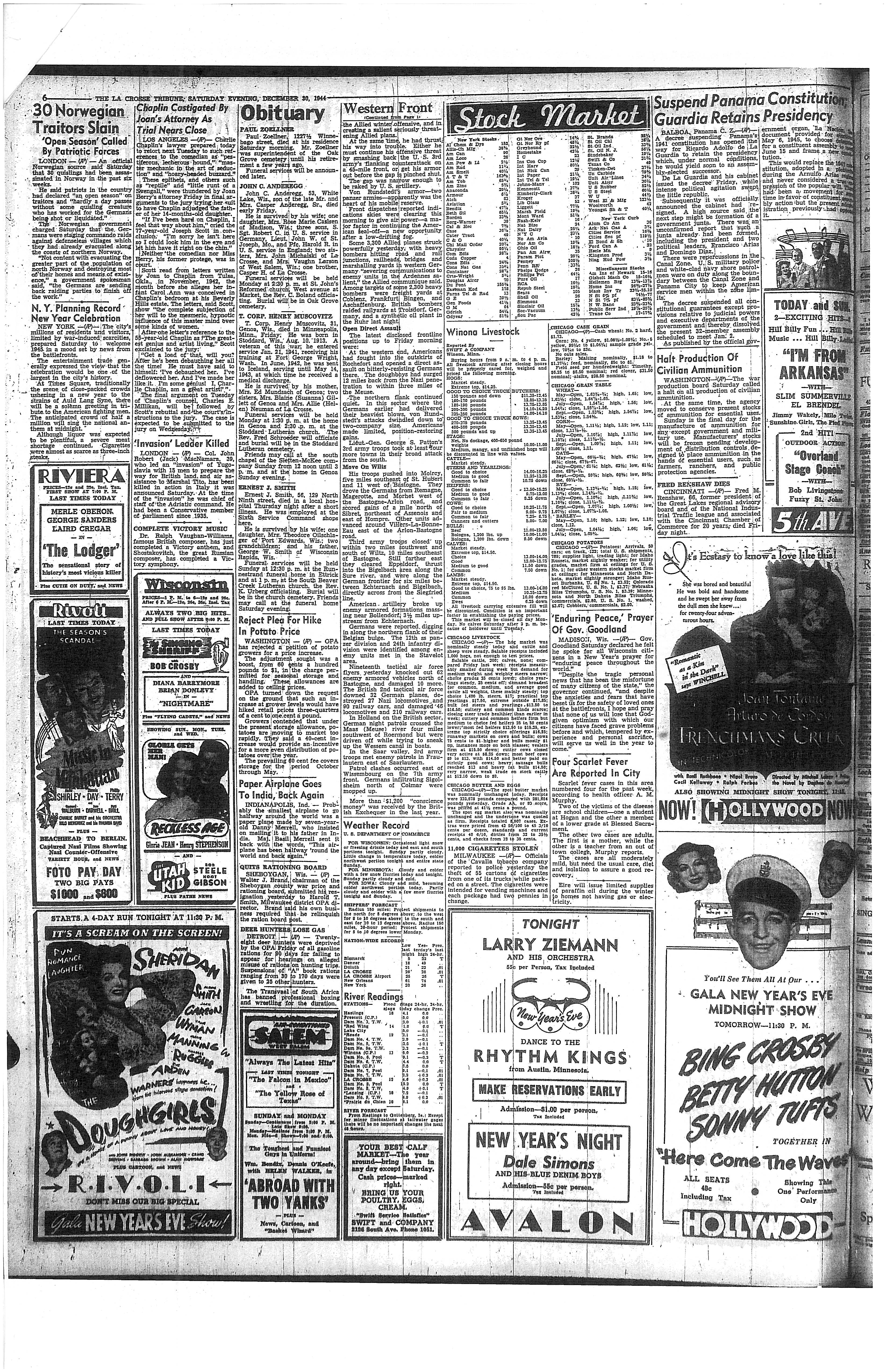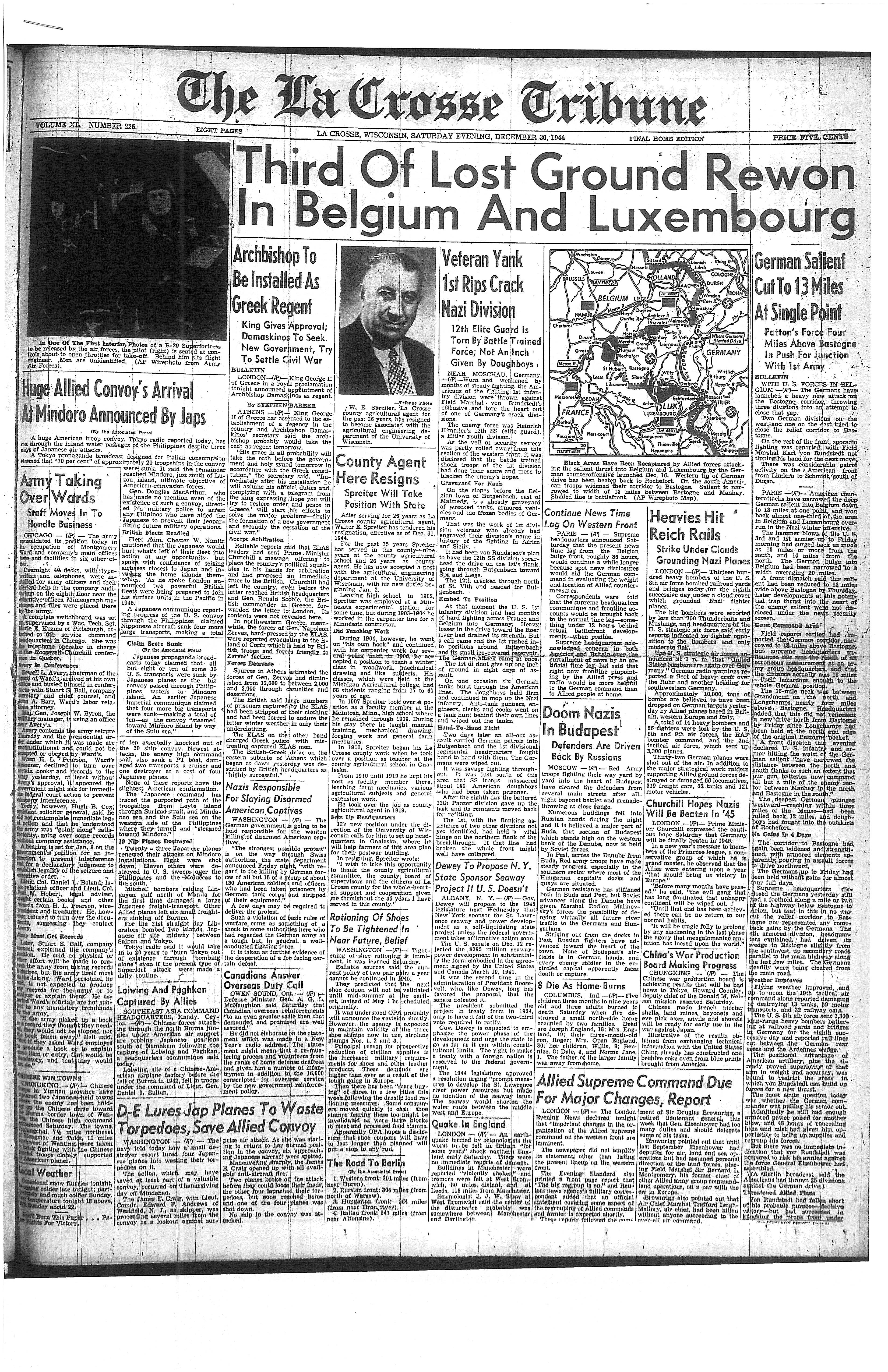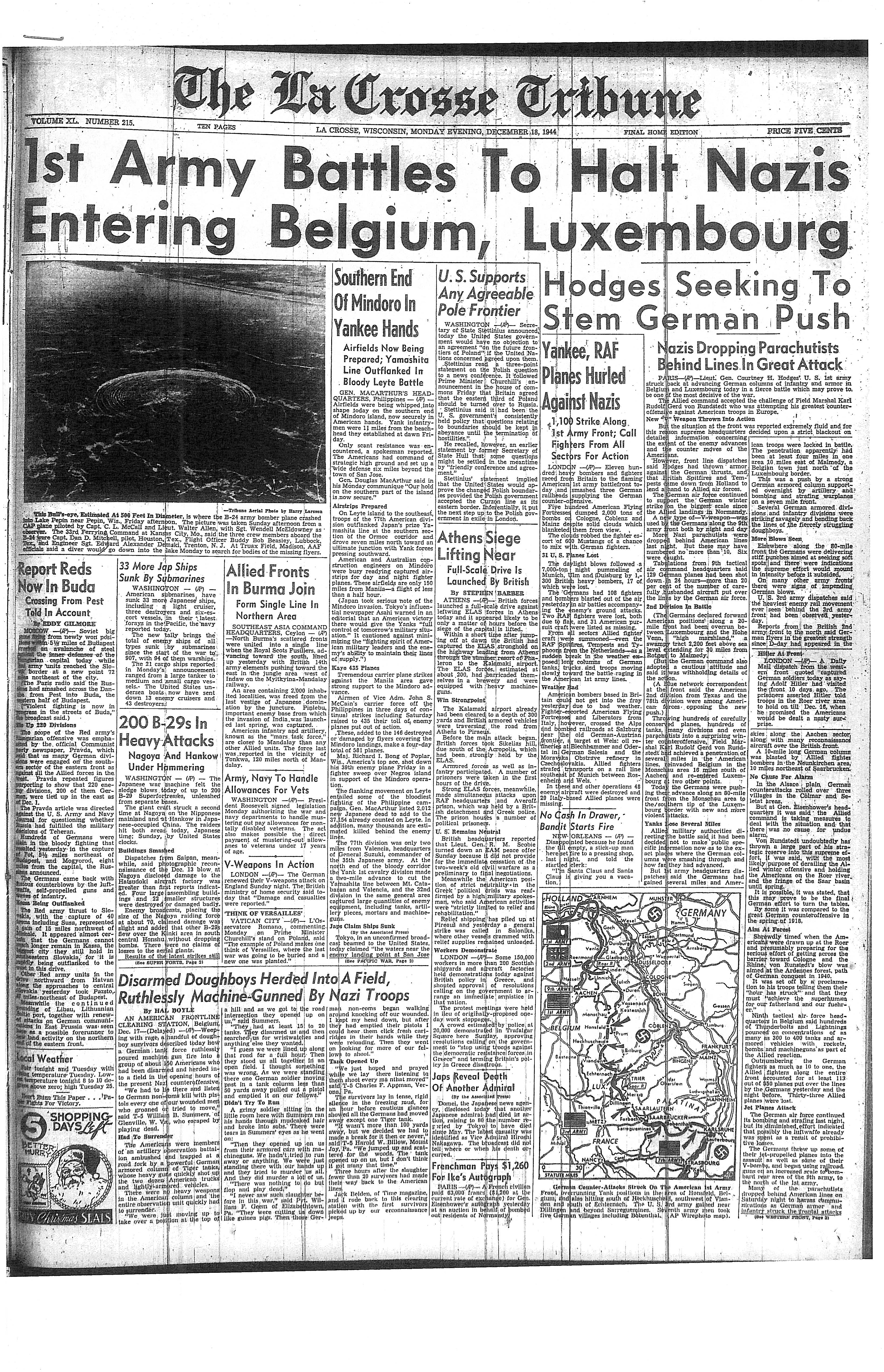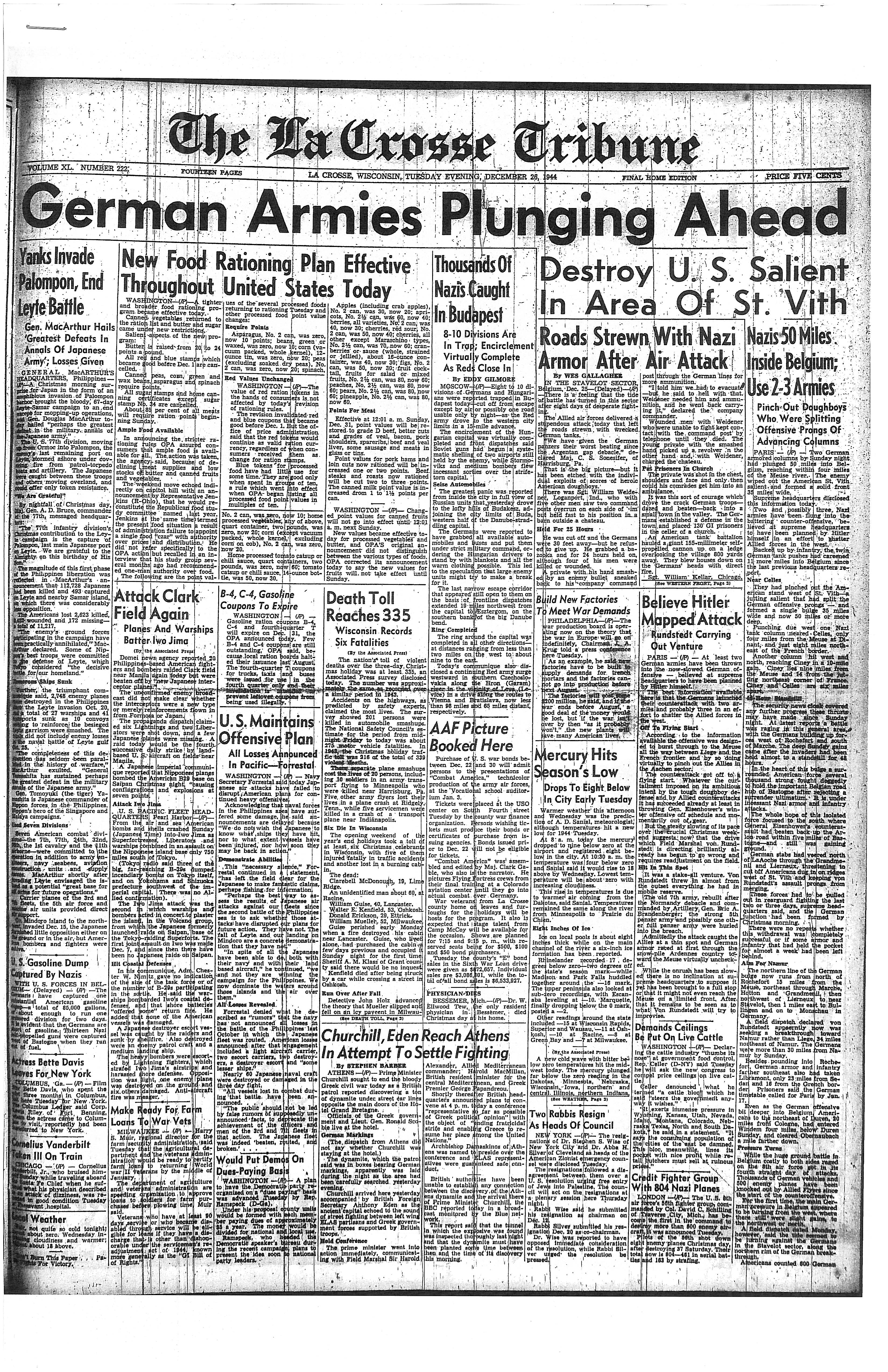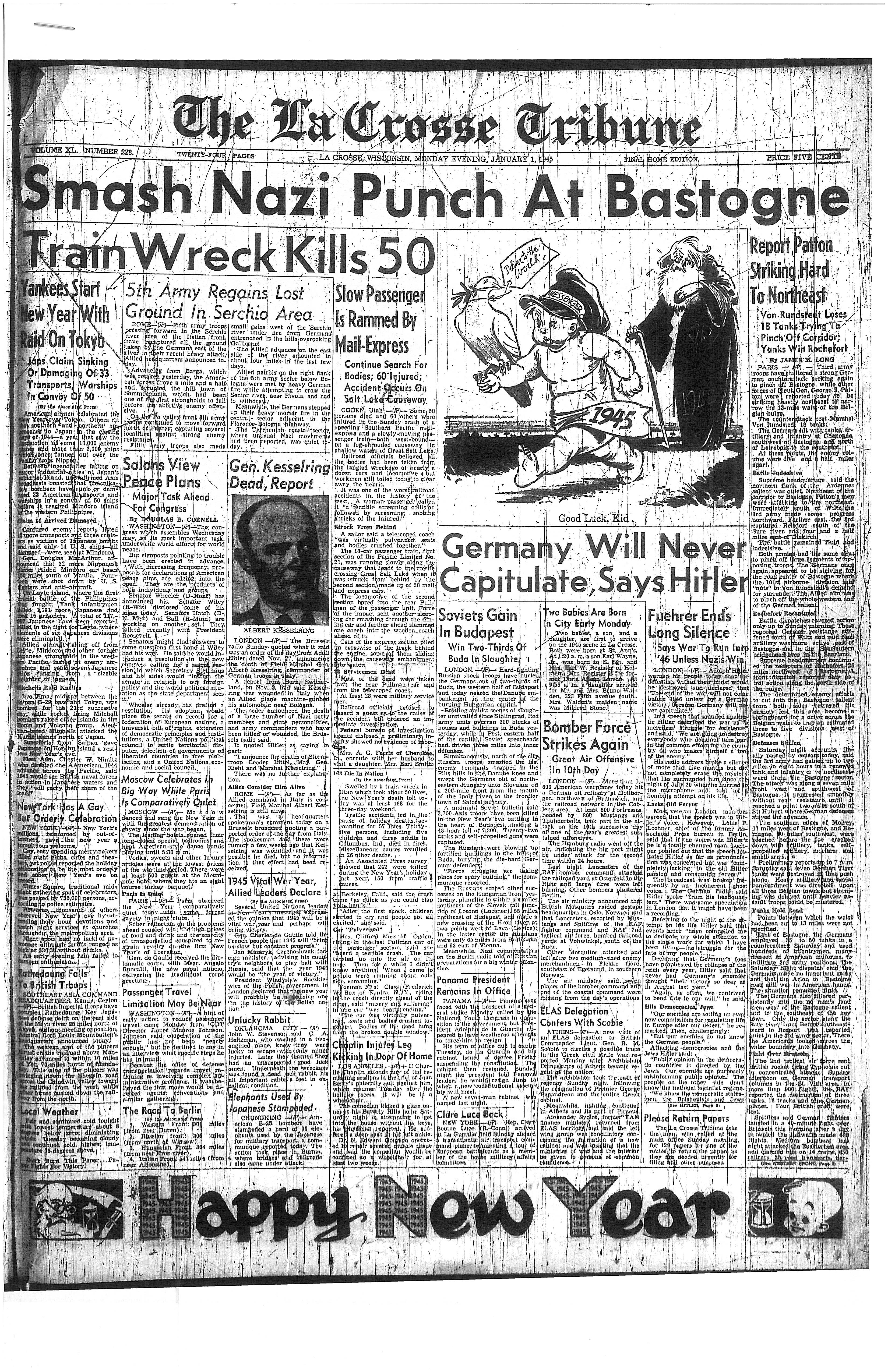 December 18, 1944, page 1, part 1 December 18, 1944, page 2, part 2 December 26, 1944, page 1, part 1 December 26, 1944, page 2, part 2 December 30, 1944, page 1, part 1 December 30, 1944, page 6, part 2 January 1, 1945, page 1, part 1 January 1, 1945, page 2, part 2World War II — Hitler