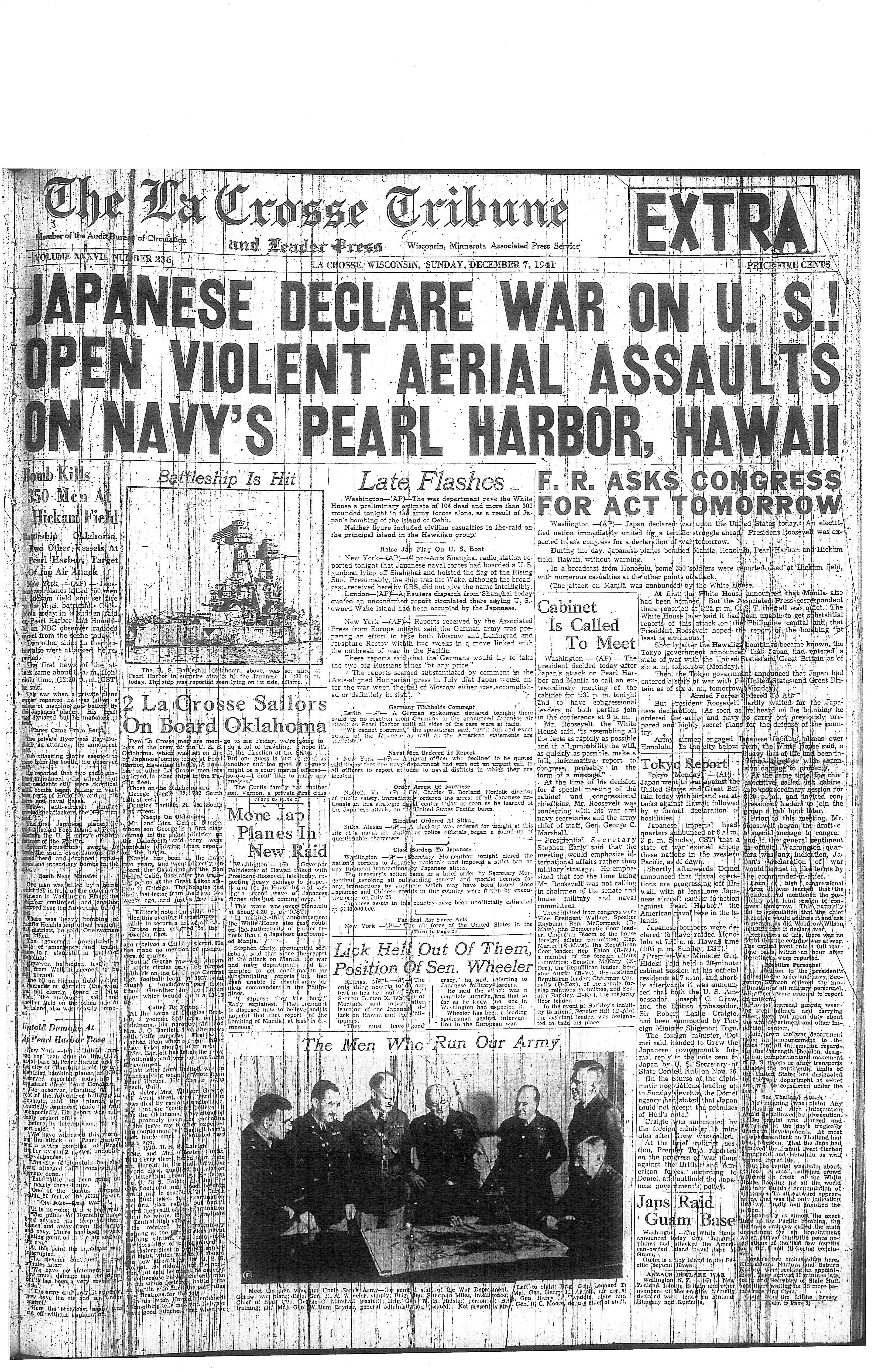 December 7, 1941, page 1, part 1 December 7, 1941, page 2, part 2 December 8, 1941, page 1Topic